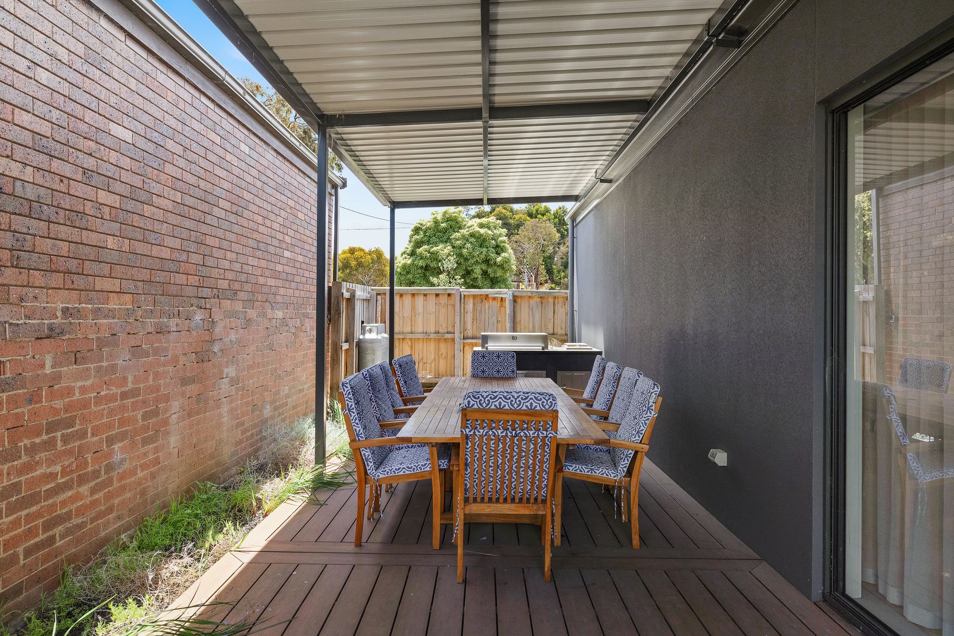 The covered ground floor Deck (with gas BBQ & outdoor seating for 10 people) overlooks the enclosed Courtyard and there is a first floor Balcony. The huge Garage provides parking space for 3-4 cars as well as internal access into the home.