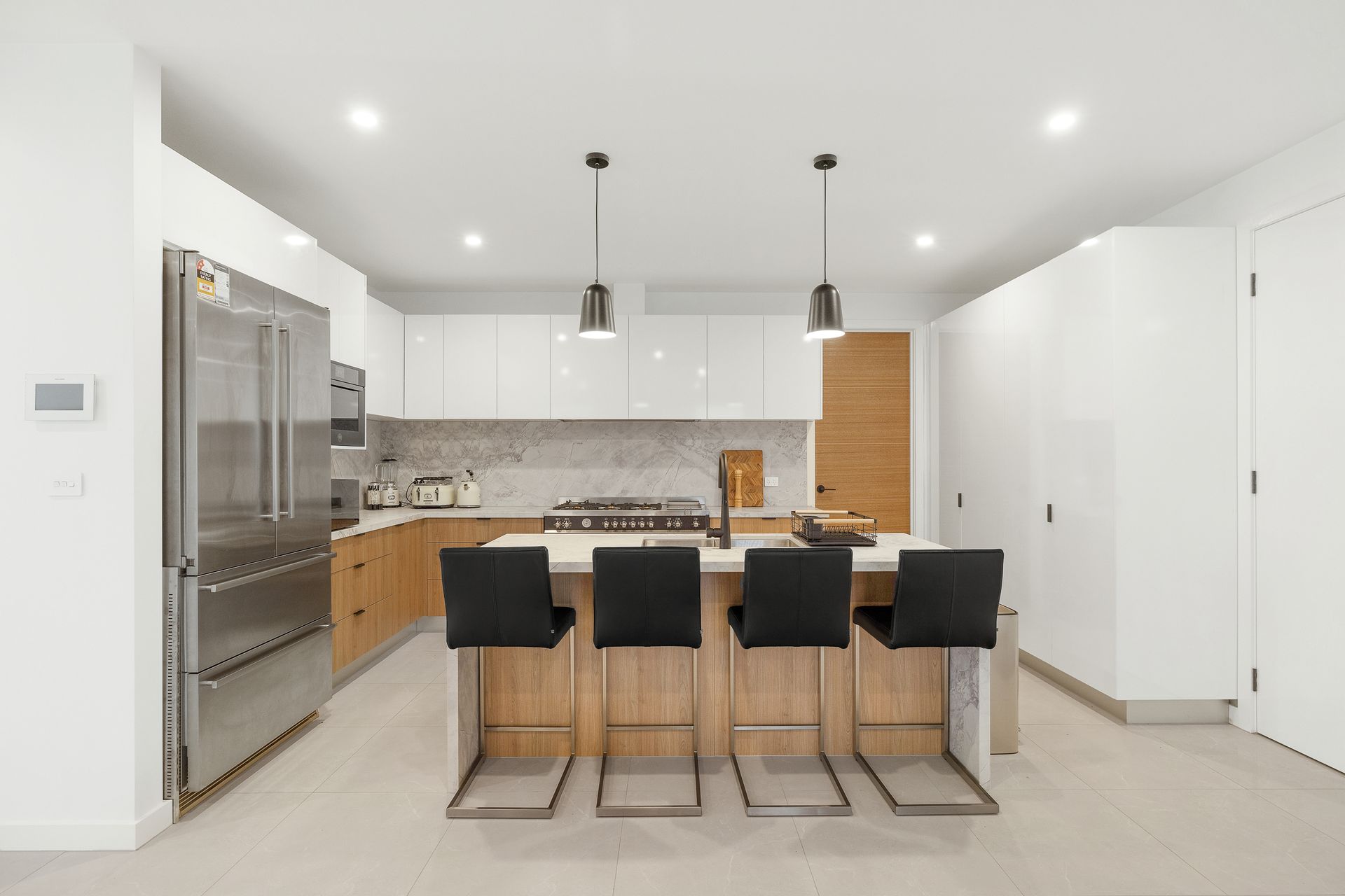 The fully appointed kitchen is equipped with cooking utensils, crockery, cutlery, microwave, XXX pod coffee machine, toaster, kettle, etc. plus a double sink, Liebherr French door fridge, dishwasher, gas oven and 6-burner gas cook top.
