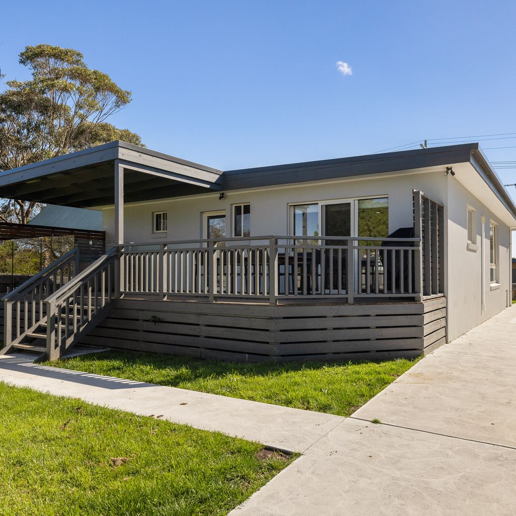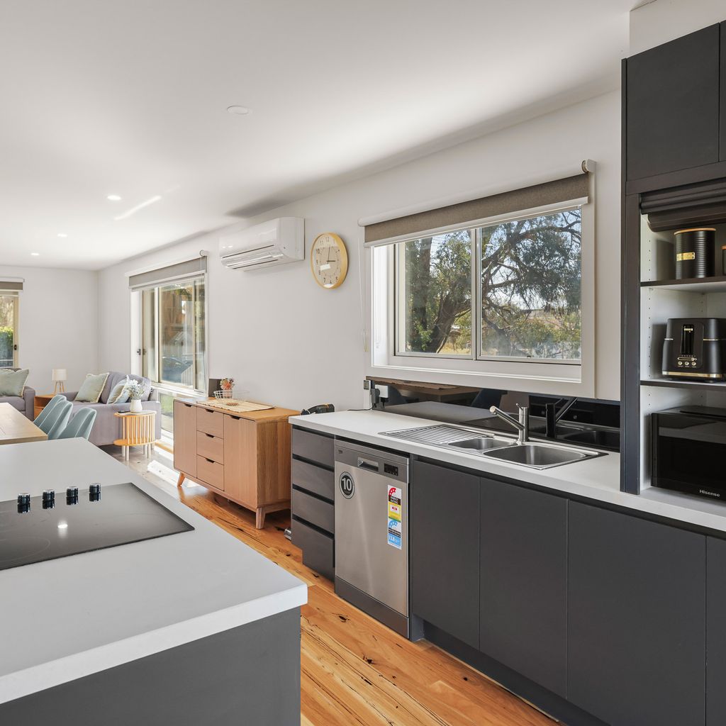 The central hallway provides access to the large open plan Living/Dining Room (with 65" smart TV) and Kitchen, that in turn flows through to the rear Deck. Also off the hallway are Bedroom 1 (with BIR and 43" smart TV), Bedroom 2 (with BIR) and Bedroom 3 (with BIR & 43" smart TV). At the rear of the home are the Bathroom (with shower & toilet) and a fully equipped Laundry (with washing machine & clothes dryer) that also leads out to the rear Deck.