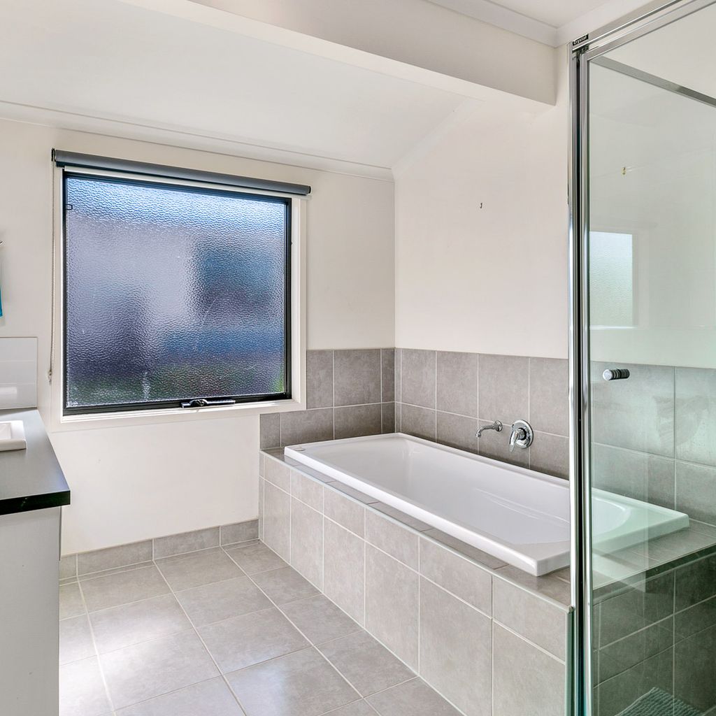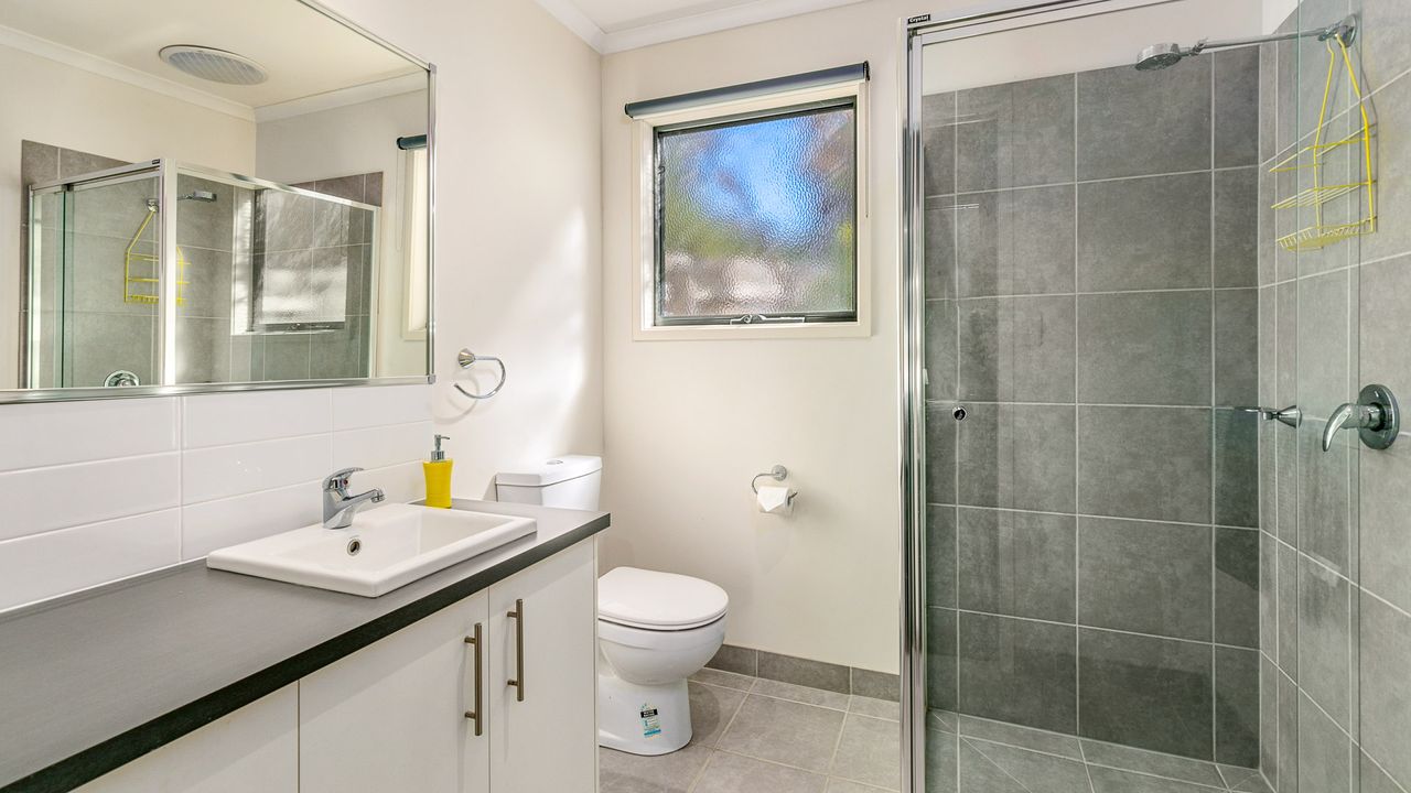 Downstairs is a large open plan Kitchen/Dining/Living Room (with smart TV, JVC Bluetooth speaker, XBox One with some games) providing direct access to the private, north facing entertainment deck, large master bedroom with walk in robe and en-suite (with shower & toilet), laundry (with washing machine & clothes dryer), and a separate toilet. The polished timber staircase leads to the second floor which features another Living room (with smart TV) and entry out onto the balcony, Bedrooms 2 & 3 (each with BIR) and the main bathroom (with shower & bath) plus a separate toilet.