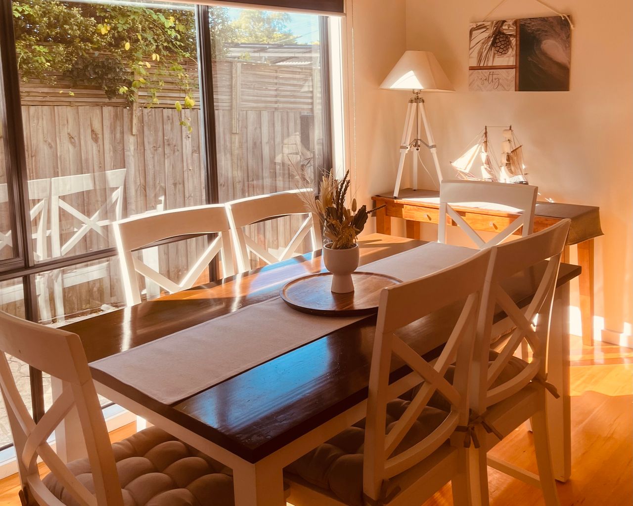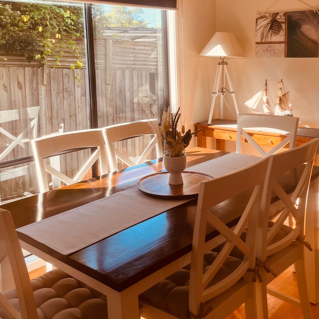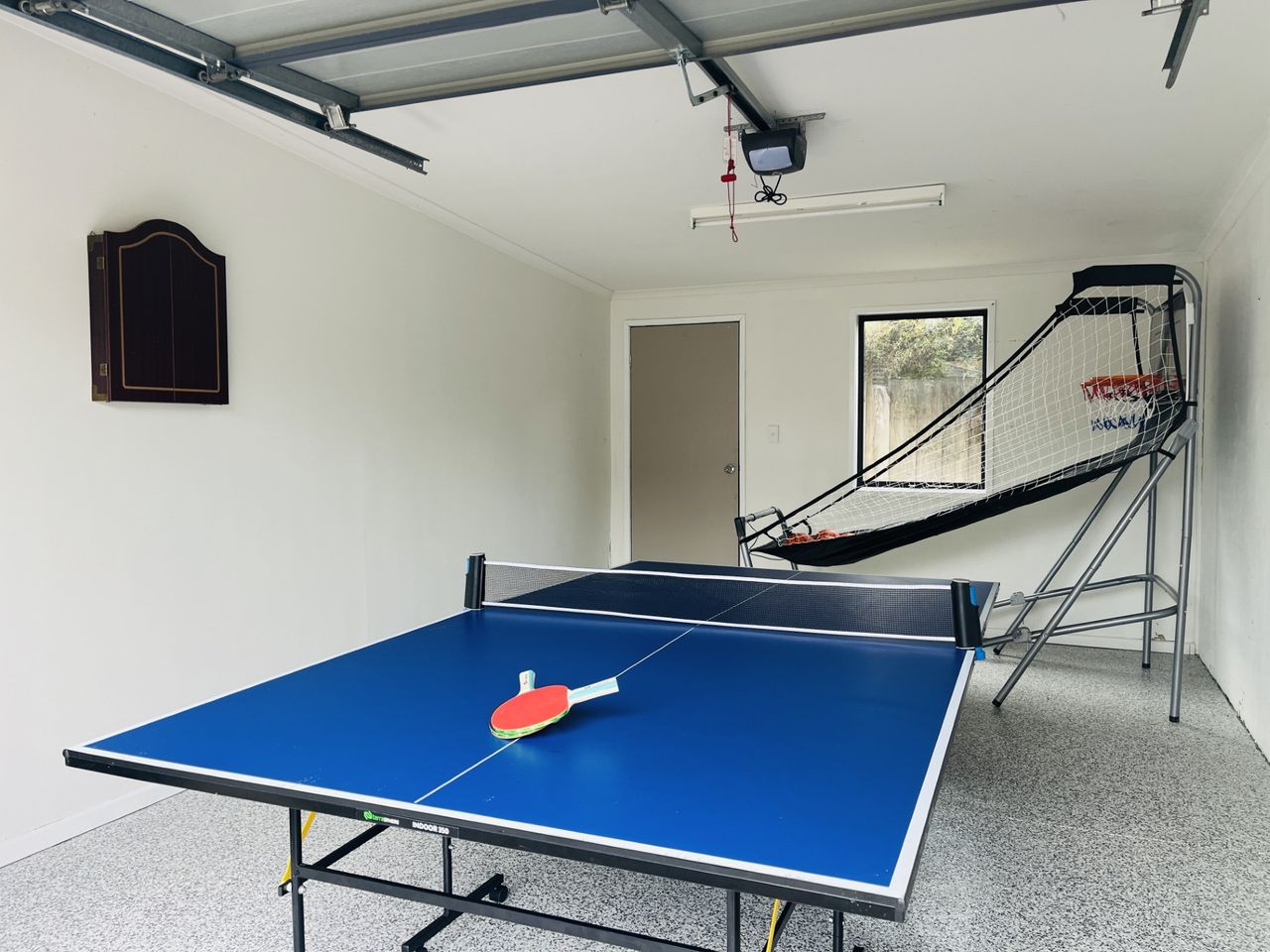 The fully fenced courtyard (with gas BBQ and seating for 6) also has a hot/cold outdoor shower and is perfect for families with children. Also featured is a single garage with access to the rear yard, plus space to park an additional car in front of the garage. Guests should note the garage has been converted into a games space (with various games including darts, arcade basketball and a table tennis table). The home also has a range of toys and outdoor equipment such as foam surfboards, push bikes, scooters and a skateboard (BYO safety items such as helmets).