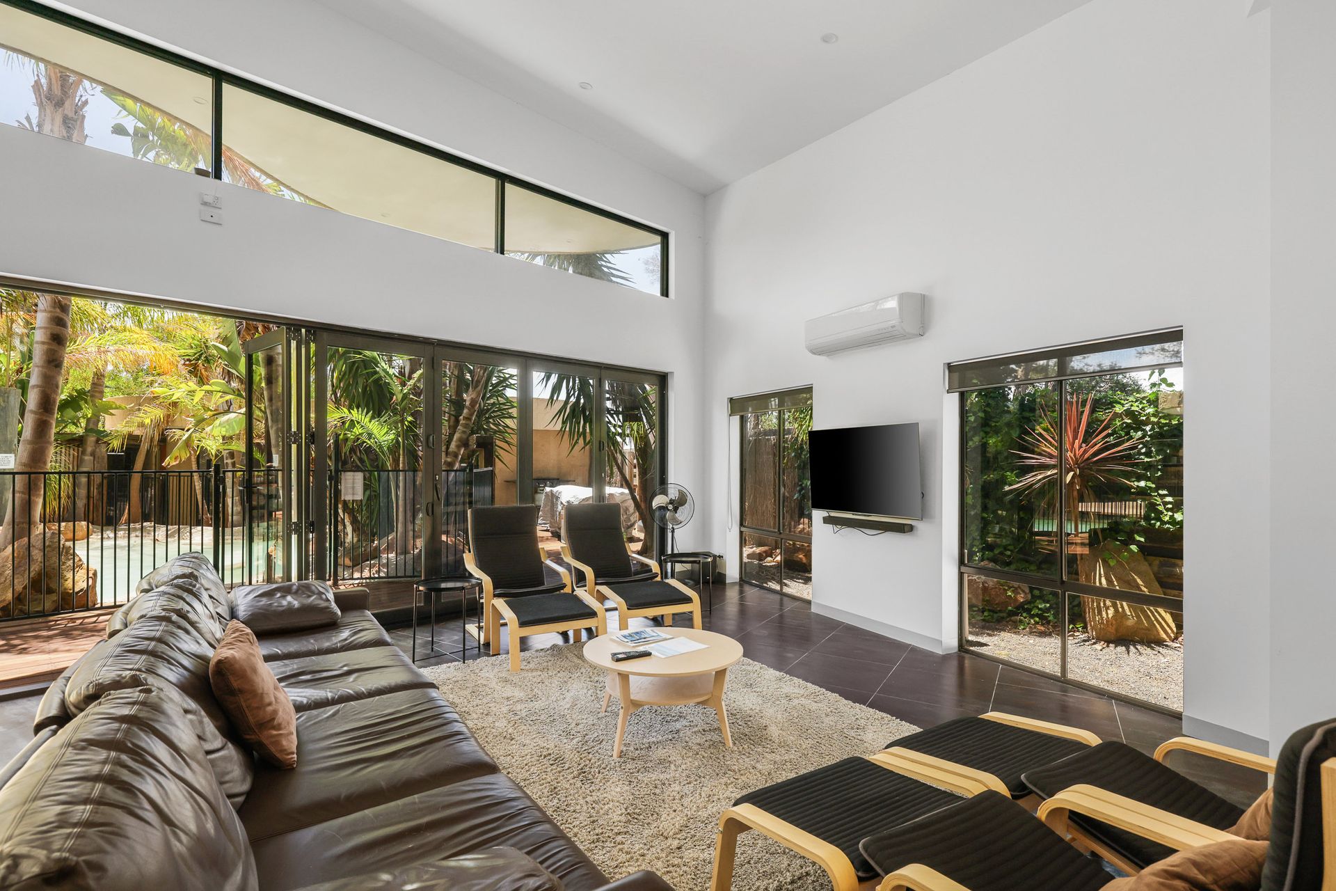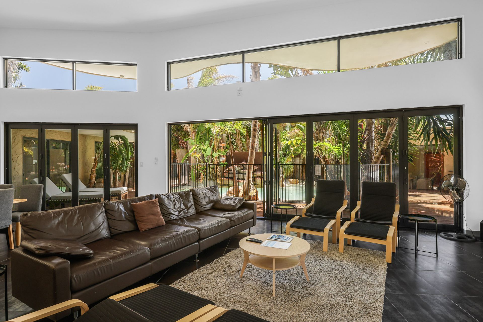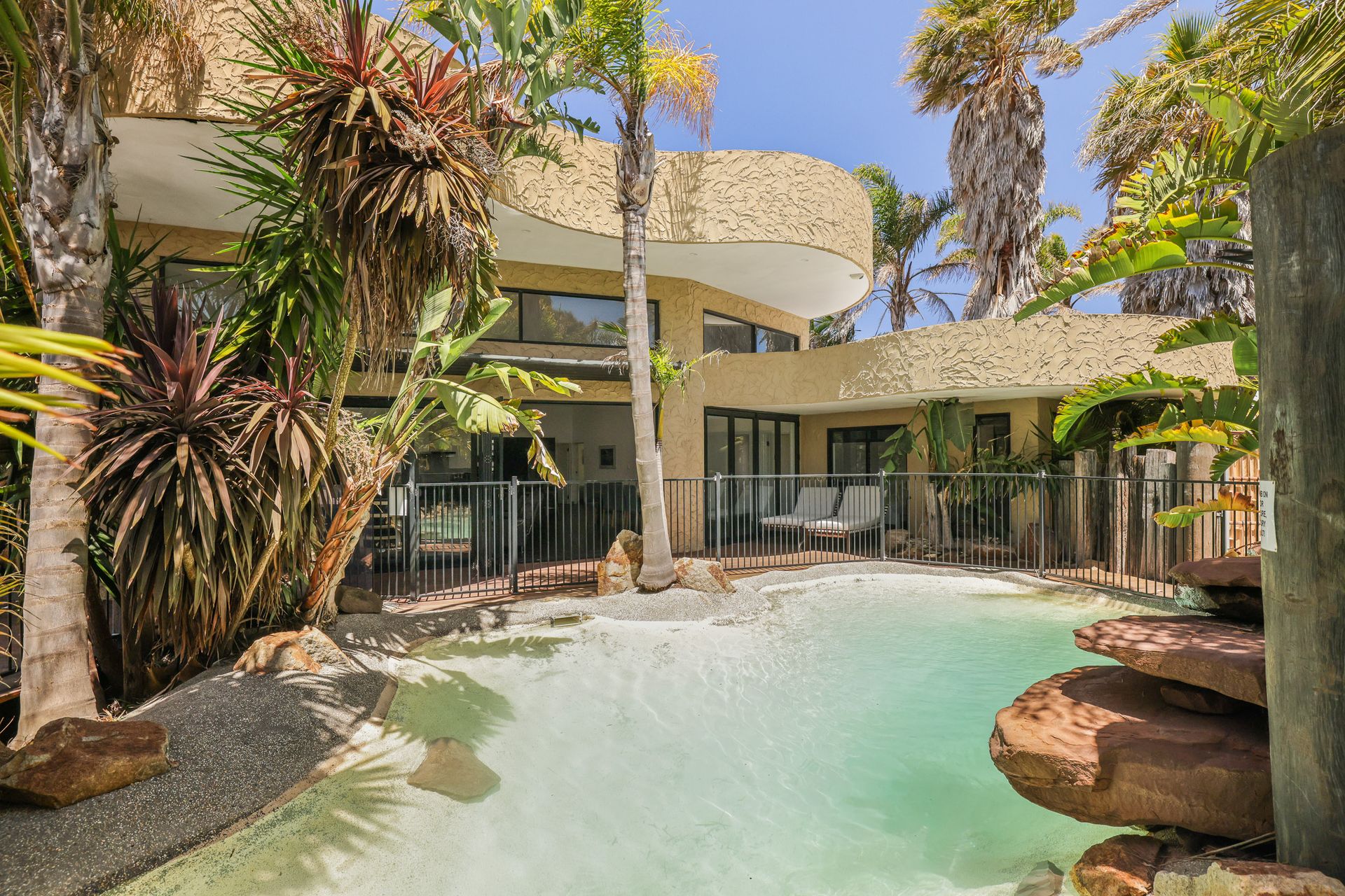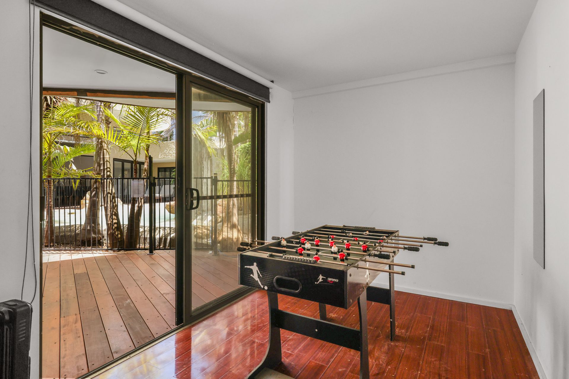 The Living Room stacker doors open and the space flows seamlessly to the centrepiece of the yard - the private stunning lagoon-style swimming pool (approximately 3m x 6m, up to 1.8m deep). Opposite to the home, is a covered outdoor area (with coonara-style fireplace, gas BBQ, some outdoor couches, tables & chairs for 10 people, a drinks fridge and a 40" smart TV) that overlooks the pool area and is adjacent to the two fantastic Games Rooms (featuring four beanbags, some chairs, a Foosball table, a 40" smart TV and a selection of card & board games). There is an outdoor hot & cold water shower and toilet next to the pool area.