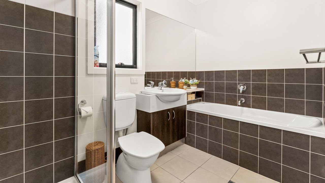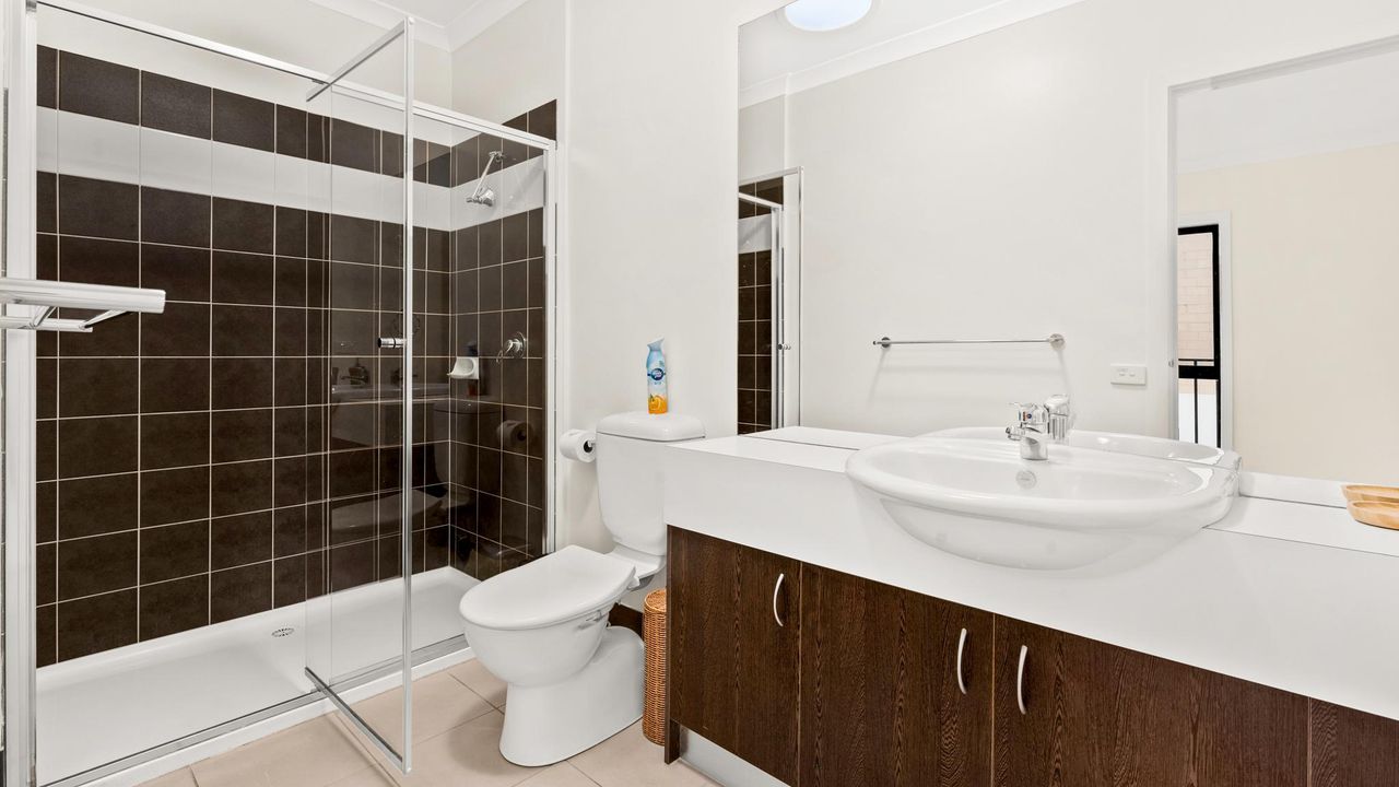The ground floor has the open plan Kitchen/Living/Dining (with 55' smart TV, & DVD player) that also provides access to the rear courtyard, and a separate Toilet. Upstairs is Bedroom 1 with BIR and ensuite (with shower & toilet), Bedrooms 2 & 3 (each with BIR), another Bathroom (with bath, shower & toilet) and a fully equipped Laundry (with washing machine & clothes dryer).