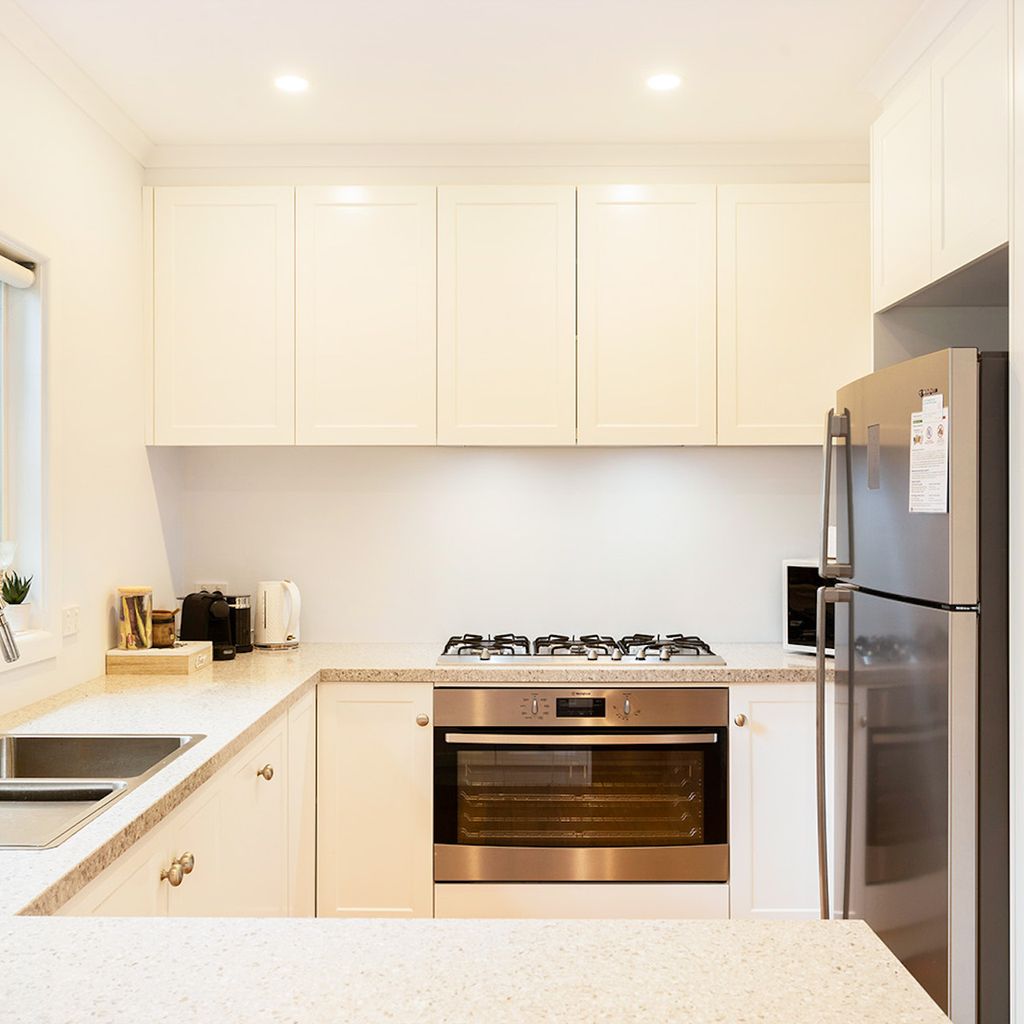 The fully appointed kitchen is equipped with cooking utensils, crockery, cutlery, microwave, Nespresso pod coffee machine, toaster, kettle, air fryer, etc. plus a double sink, fridge (plus a bar fridge on the Alfresco), dishwasher, electric oven and gas cook top.