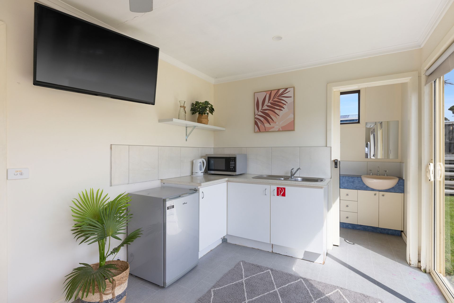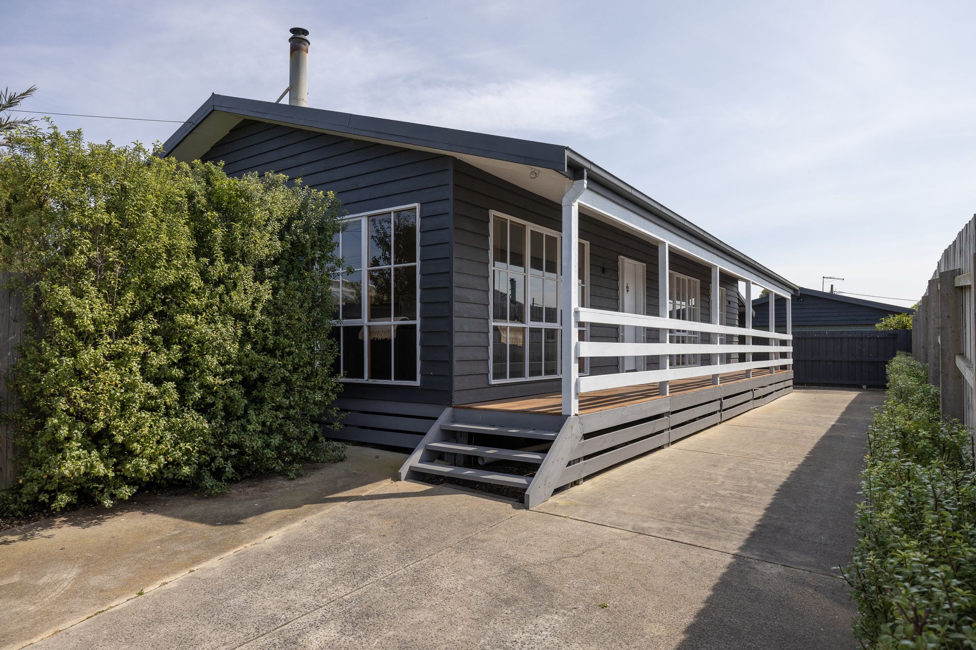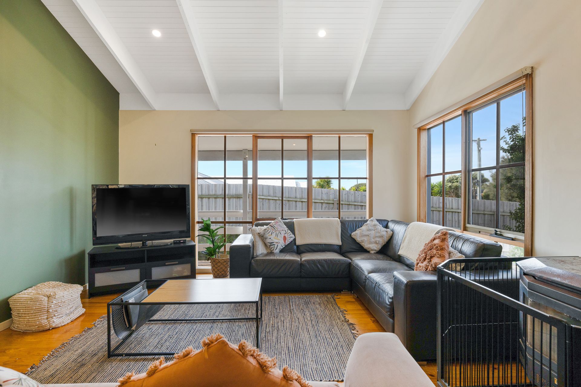 The large open plan Kitchen/Dining/Living Room (with smart TV & Coonara wood heater) provides a fantastic space to relax. A central hallway leads to Bedroom 1, which features a TV and an ensuite (with shower & toilet), the Laundry (with washing machine) that provides access to the side deck, a Bathroom (with bath & shower), Bedroom 2 (with BIR) and Bedroom 3.