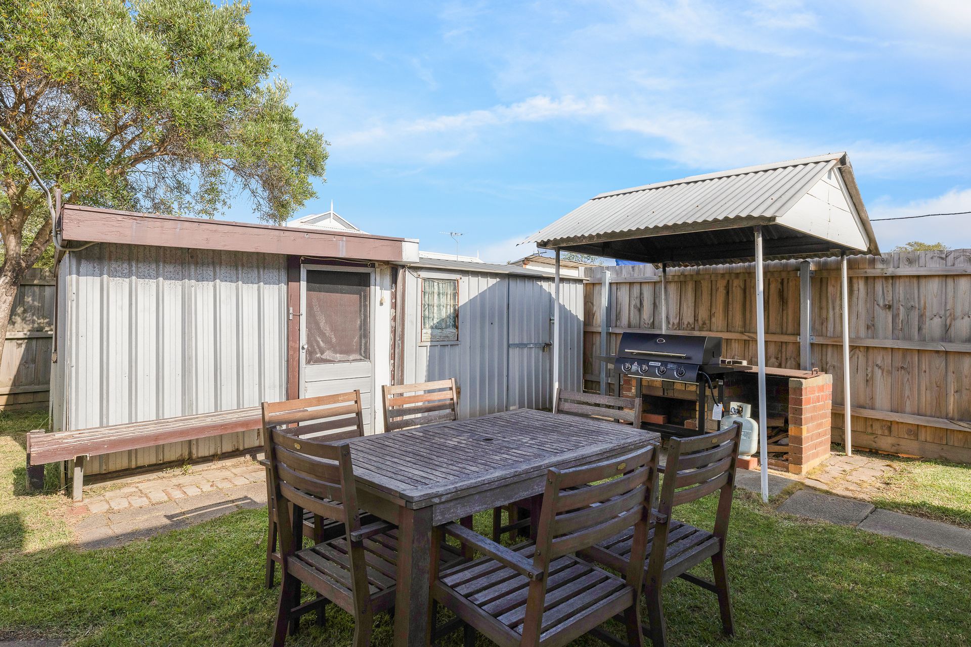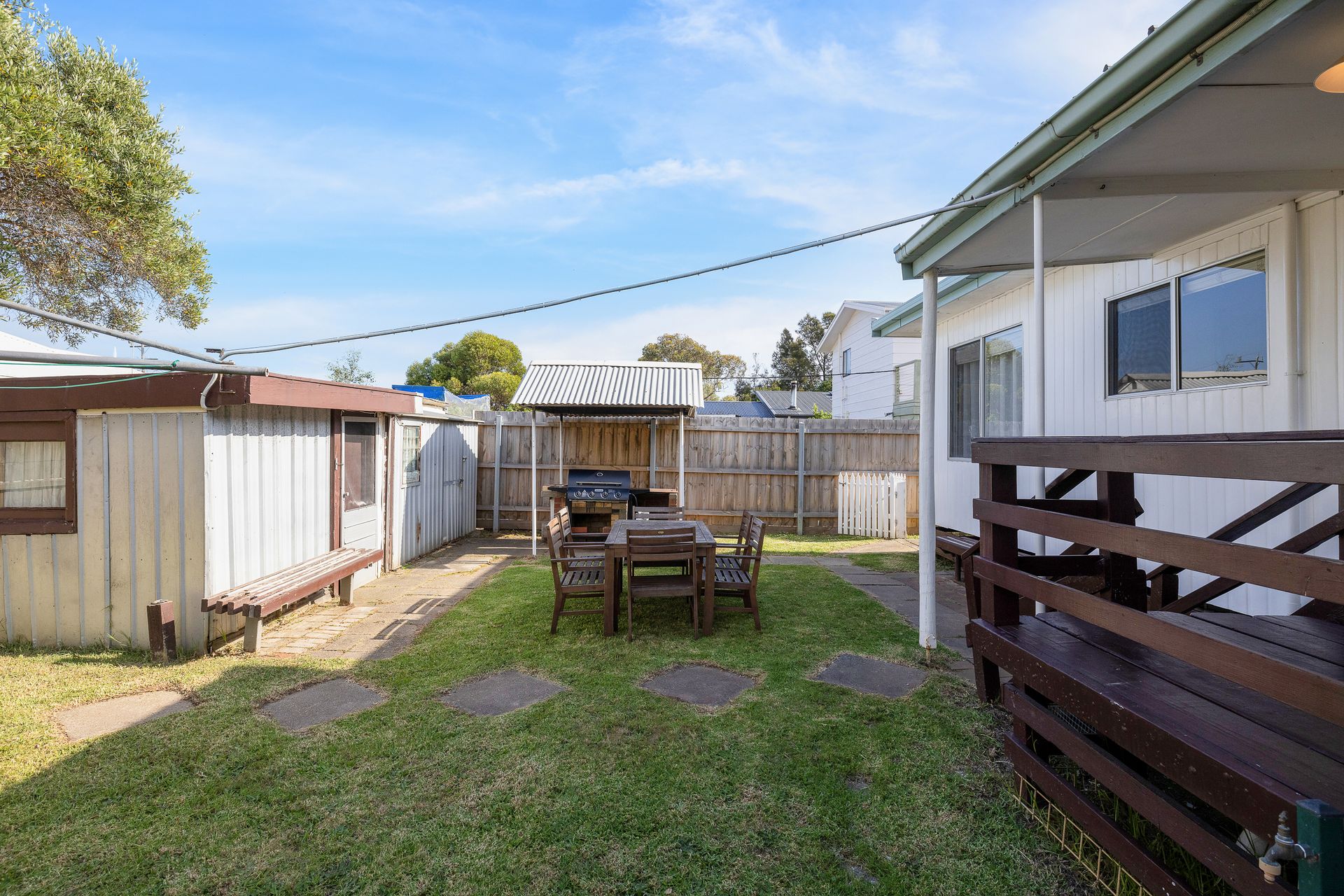 The fully enclosed block (and a separate enclosed rear yard) is perfect for children and pets alike with plenty of space to play ball games, etc. The small back porch (with gas BBQ) overlooks the rear yard which features an outdoor setting for 6 people. The carport provides space for 1 car, while the large open grassed front yard provides parking for 4+ additional vehicles (cars, boats and/or caravans).