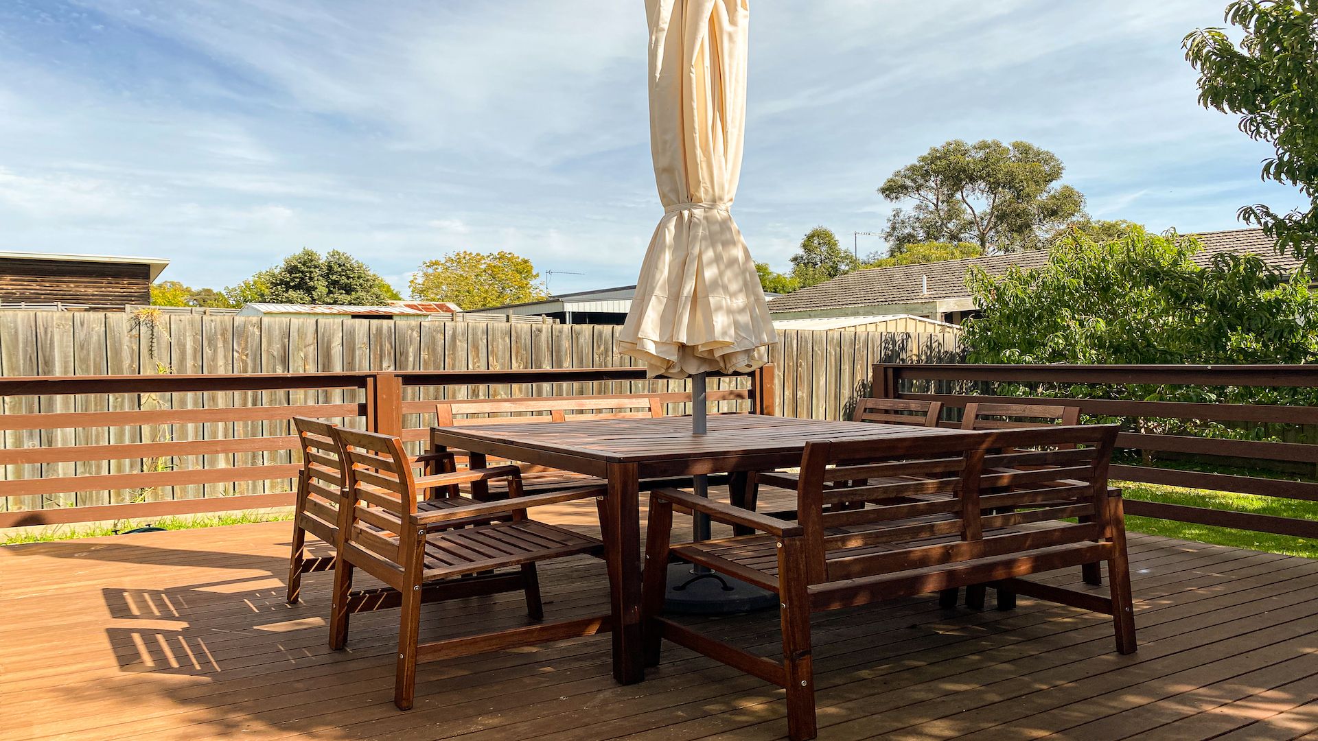 The amazing north facing outdoor entertaining area with seating for 8 people looks out on the fully enclosed rear yard which provides a perfect place for children to play. The single car garage is not accessible to guests but there is parking for 2 cars in the driveway.