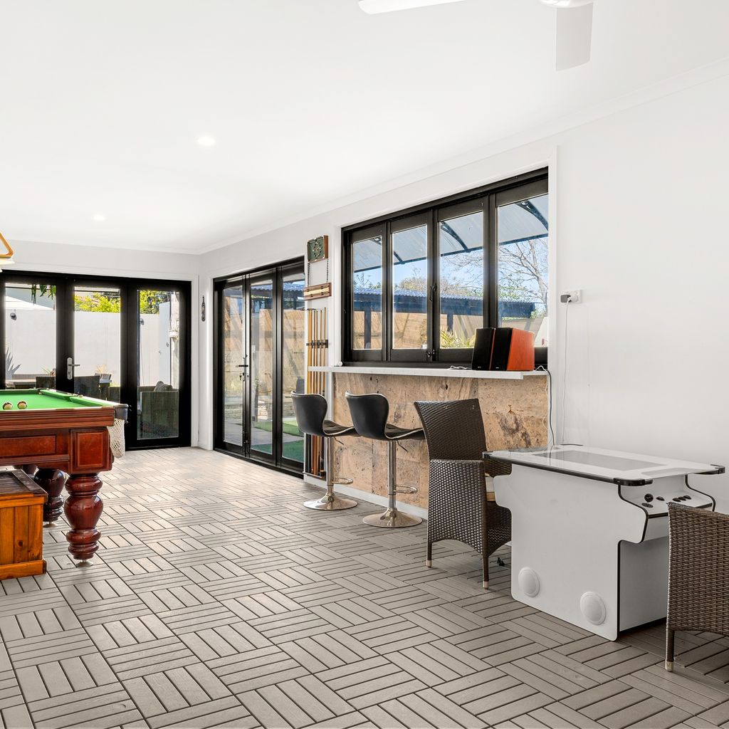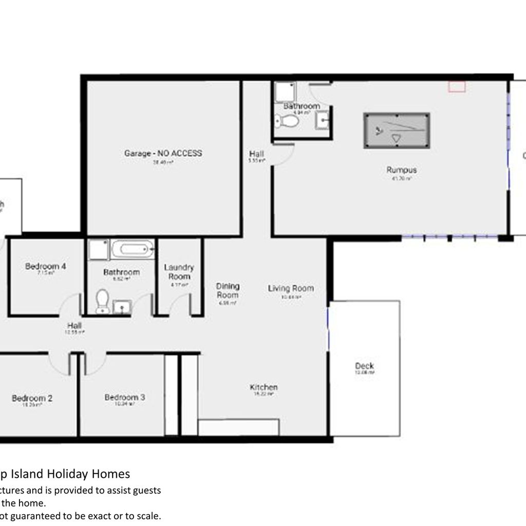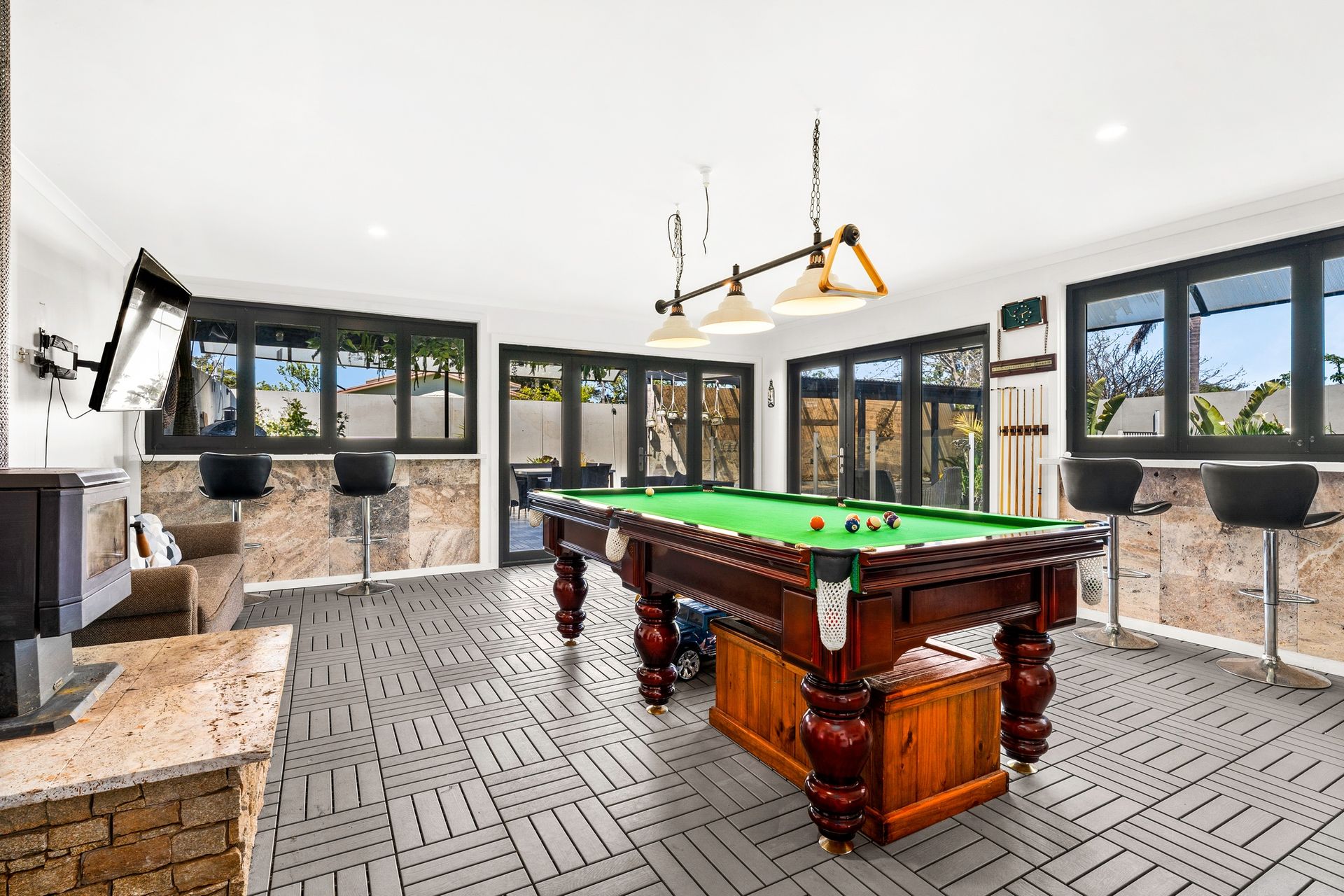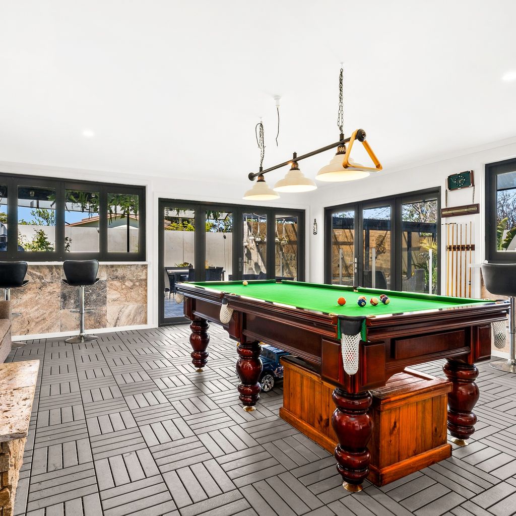 The master bedroom is at the front of the home and features a smart TV, walk through robe and ensuite with shower and toilet. The central hallway provides access to the other three bedrooms (bedrooms 3 and 4 have built in robes) plus the main bathroom (with bath, shower, toilet and TV) and the laundry. The large central open plan kitchen/dining/living room (with 75' TV) provides access out to a central deck that overlooks the rear yard. A short hall leads to the light filled 2nd living room/rumpus room with soft floor coverings (perfect for wet feet coming in from the pool and spa) a pool table, coonara wood heater (wood not provided), smart TV, cd player and bluetooth speakers, an arcade game and servery windows leading out to the covered outdoor kitchen. There is also another bathroom off the rumpus room with a shower and toilet.