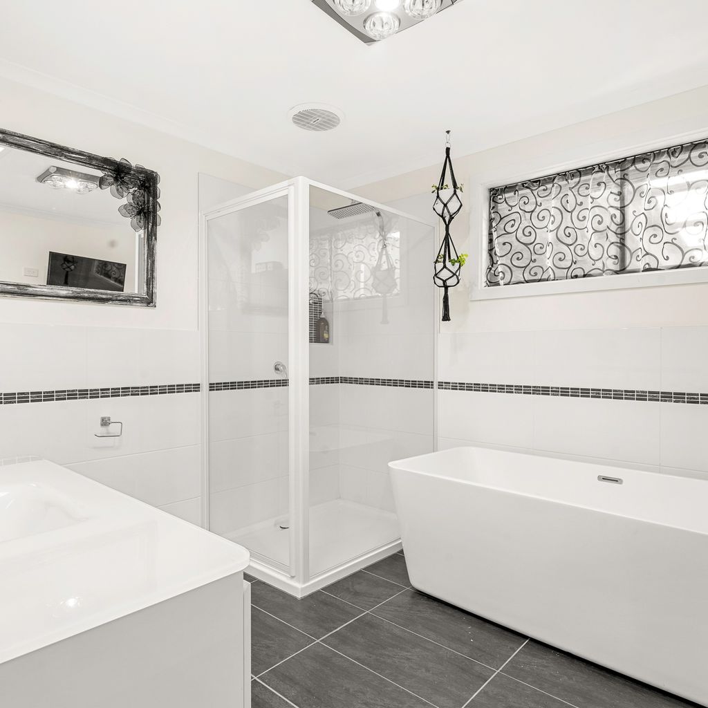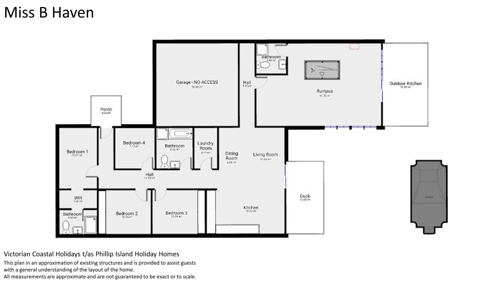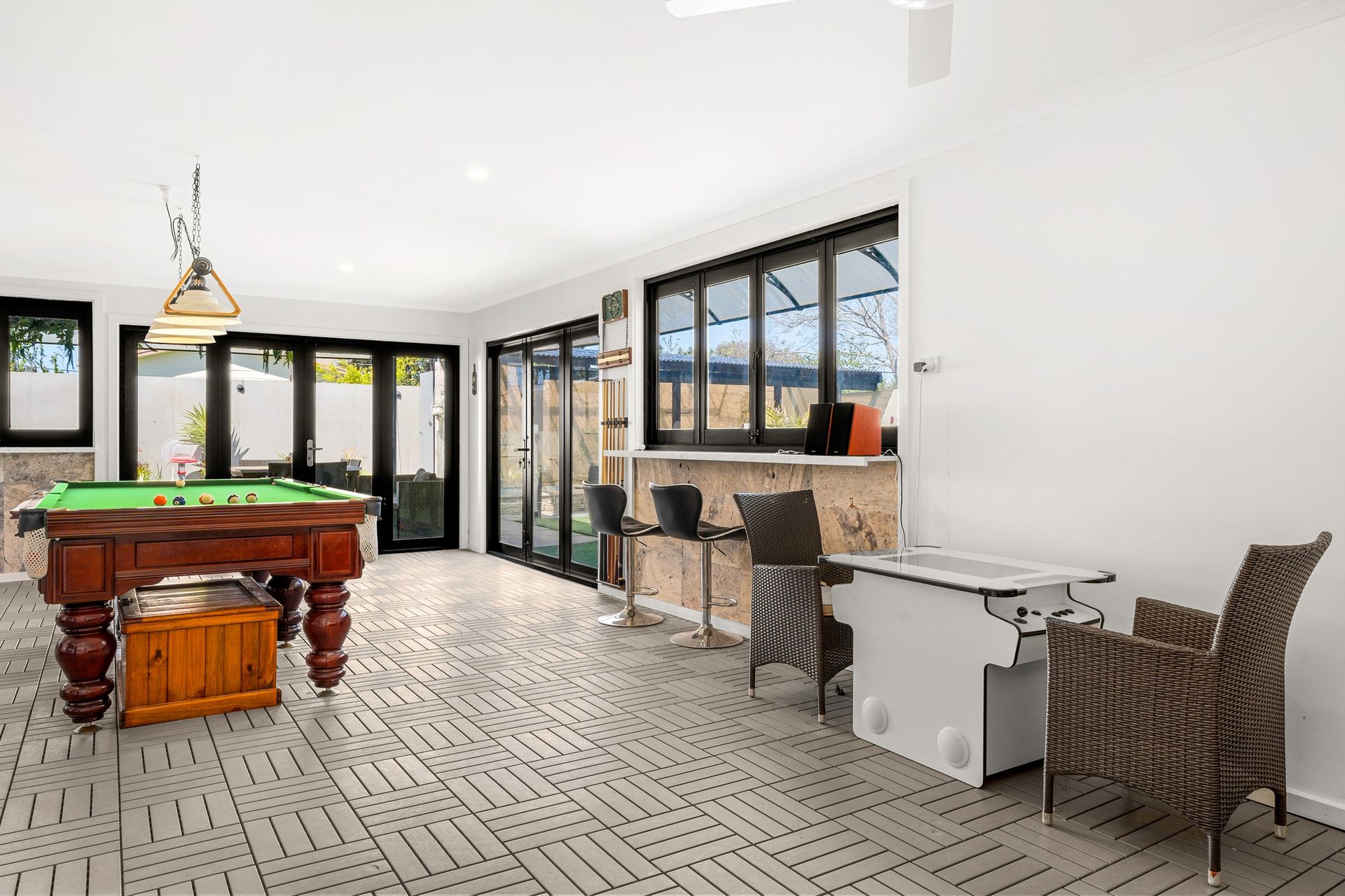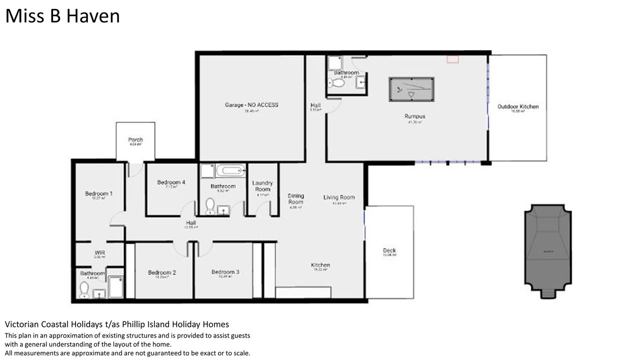 The master bedroom is at the front of the home and features a smart TV, walk through robe and ensuite with shower and toilet. The central hallway provides access to the other three bedrooms (bedrooms 3 and 4 have built in robes) plus the main bathroom (with bath, shower, toilet and TV) and the laundry. The large central open plan kitchen/dining/living room (with 75' TV) provides access out to a central deck that overlooks the rear yard. A short hall leads to the light filled 2nd living room/rumpus room with soft floor coverings (perfect for wet feet coming in from the pool and spa) a pool table, coonara wood heater (wood not provided), smart TV, cd player and bluetooth speakers, an arcade game and servery windows leading out to the covered outdoor kitchen. There is also another bathroom off the rumpus room with a shower and toilet.