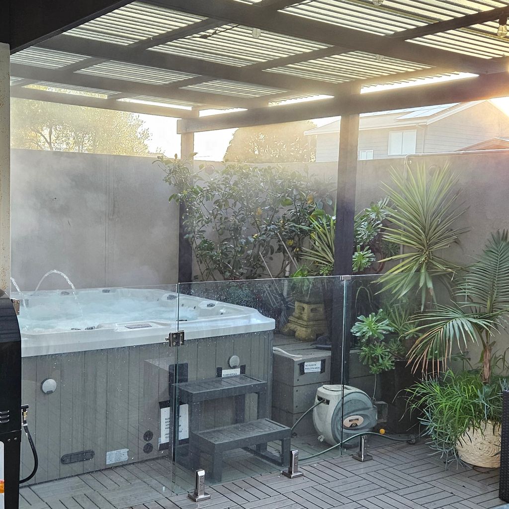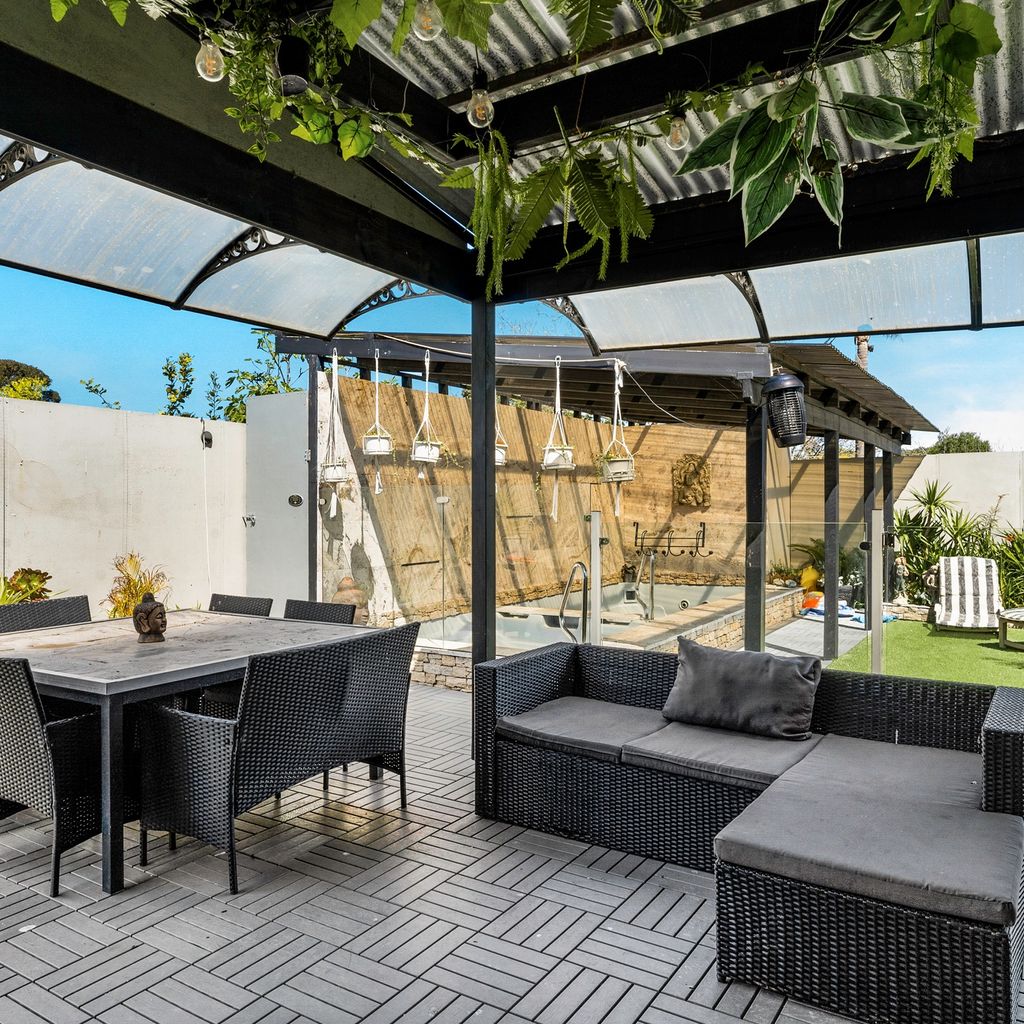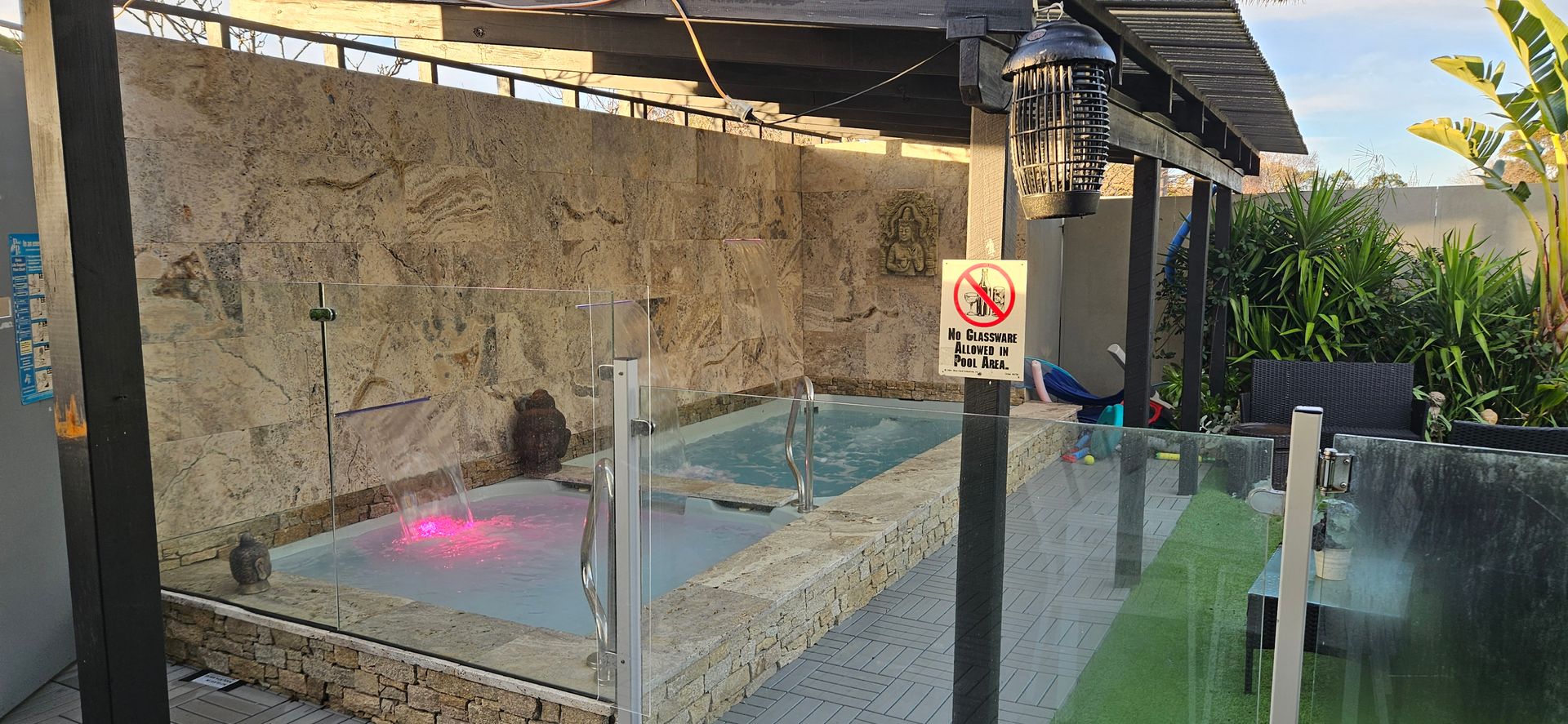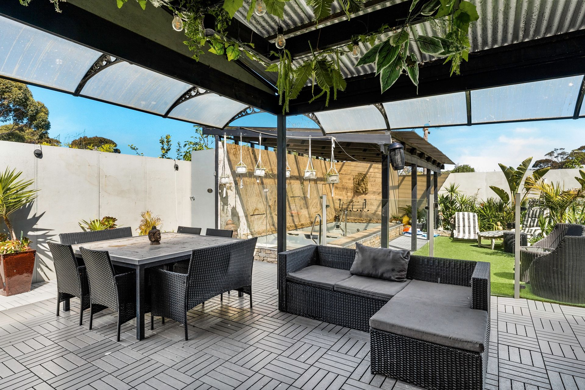 The rear yard is fully enclosed and is perfect for children and pets alike. The fully covered outdoor kitchen features a sink with hot/cold water, gas pizza oven, large table with 8 seats, 3 bar stools, an outdoor couch and some lounge beds. The key attraction is the rear yard with its covered pergola housing the electric heated 8-seater spa (2.3m x 2.3m) and heated (electric heat pump) kids wading pool (2.3m x 2.5m, 300mm deep), and swim-spa/pool (4.5m x 2.2m), each with a waterfall feature.