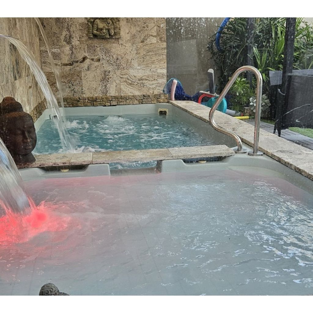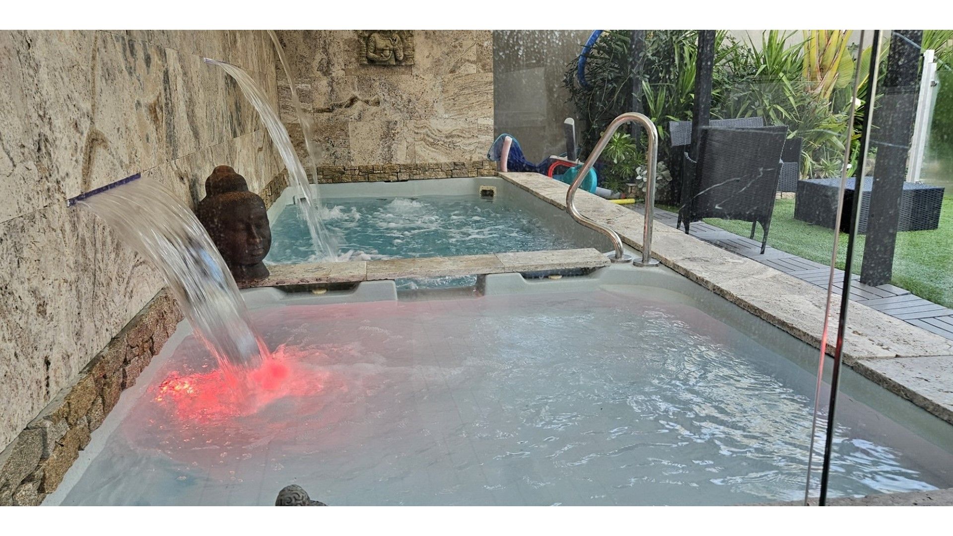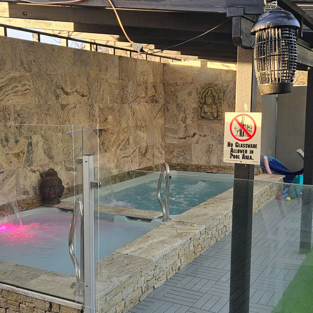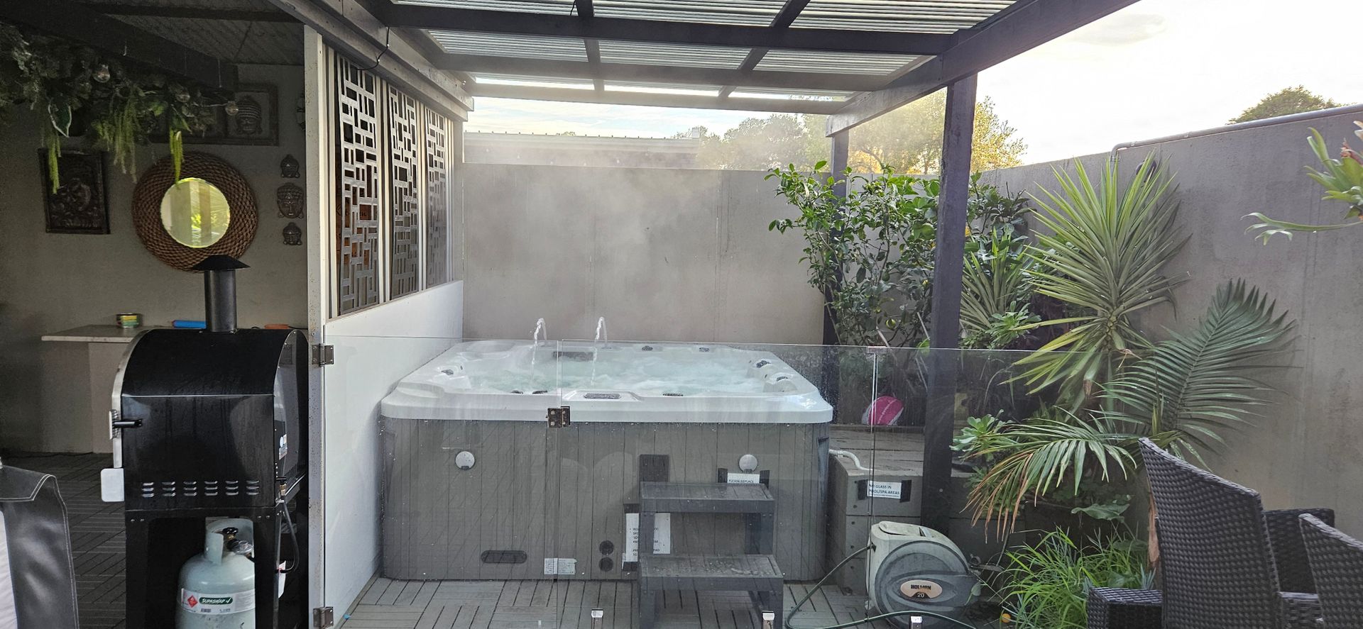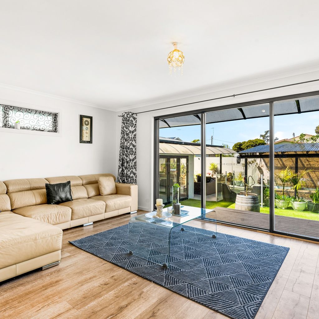 The rear yard is fully enclosed and is perfect for children and pets alike. The fully covered outdoor kitchen features a sink with hot/cold water, gas pizza oven, large table with 8 seats, 3 bar stools, an outdoor couch and some lounge beds. The key attraction is the rear yard with its covered pergola housing the electric heated 8-seater spa (2.3m x 2.3m) and heated (electric heat pump) kids wading pool (2.3m x 2.5m, 300mm deep), and swim-spa/pool (4.5m x 2.2m), each with a waterfall feature.