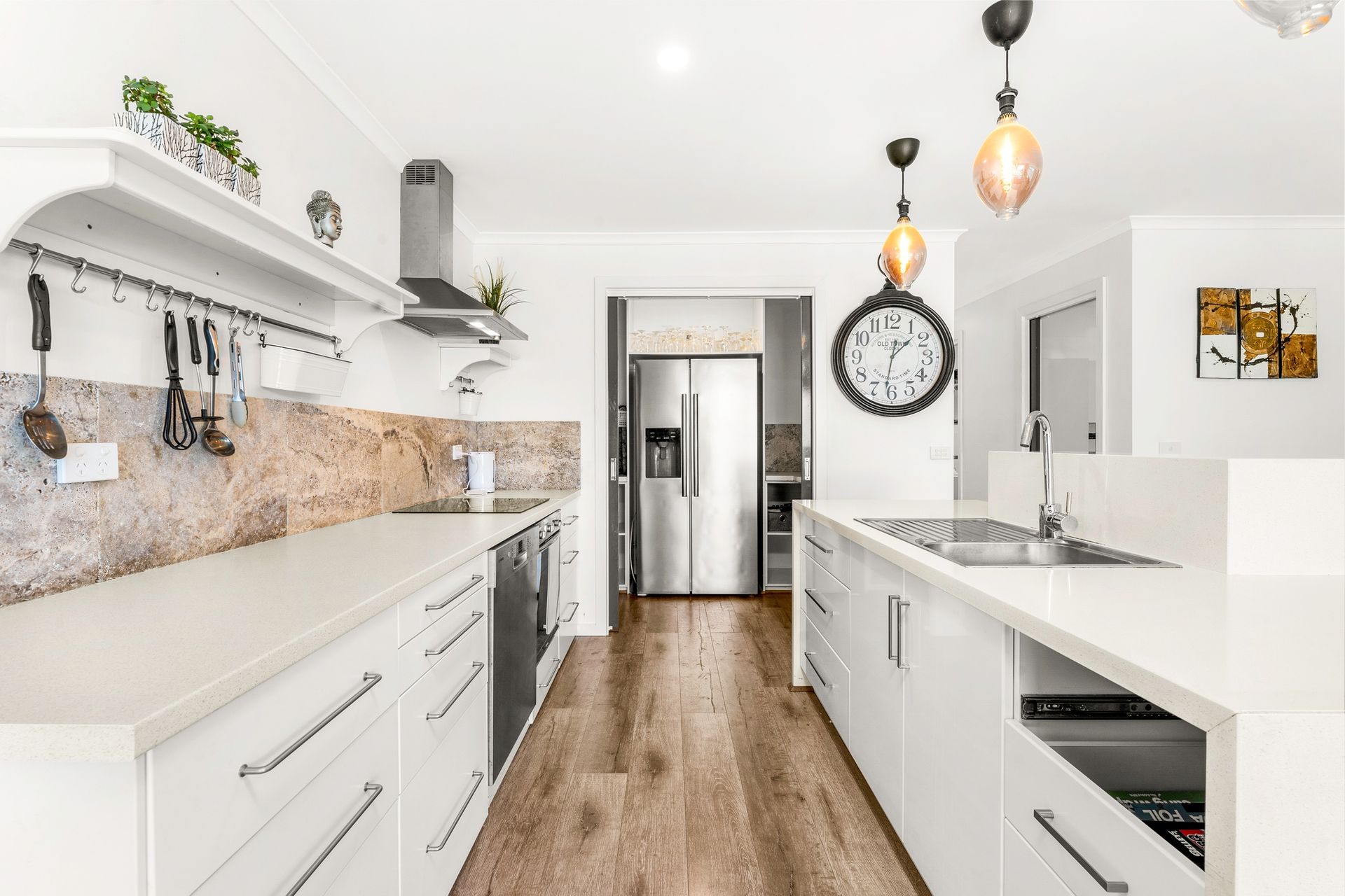 The fully appointed kitchen is equipped with cooking utensils, crockery, cutlery, microwave, Aldi pod coffee machine, toaster, kettle, etc. plus a double sink, large fridge (with cold water & ice dispenser), dishwasher, electric oven and cook top. There is an additional full size fridge in the Rumpus/Games Room.