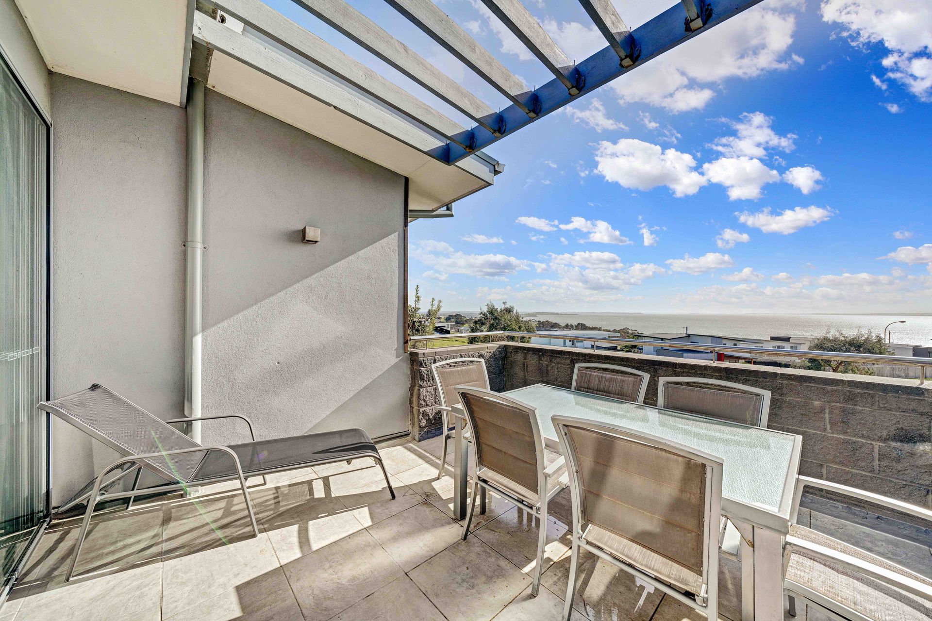 The central open plan Kitchen/Dining room opens to the Living Room (with smart TV & delightful ocean views) provides space to relax in privacy. There are two bedrooms - the main with ocean views, and both have built in robes. The bathroom (with bath, shower & toilet) is also accessed off the central Living Room as is the Laundry (with a combined washing machine/dryer).