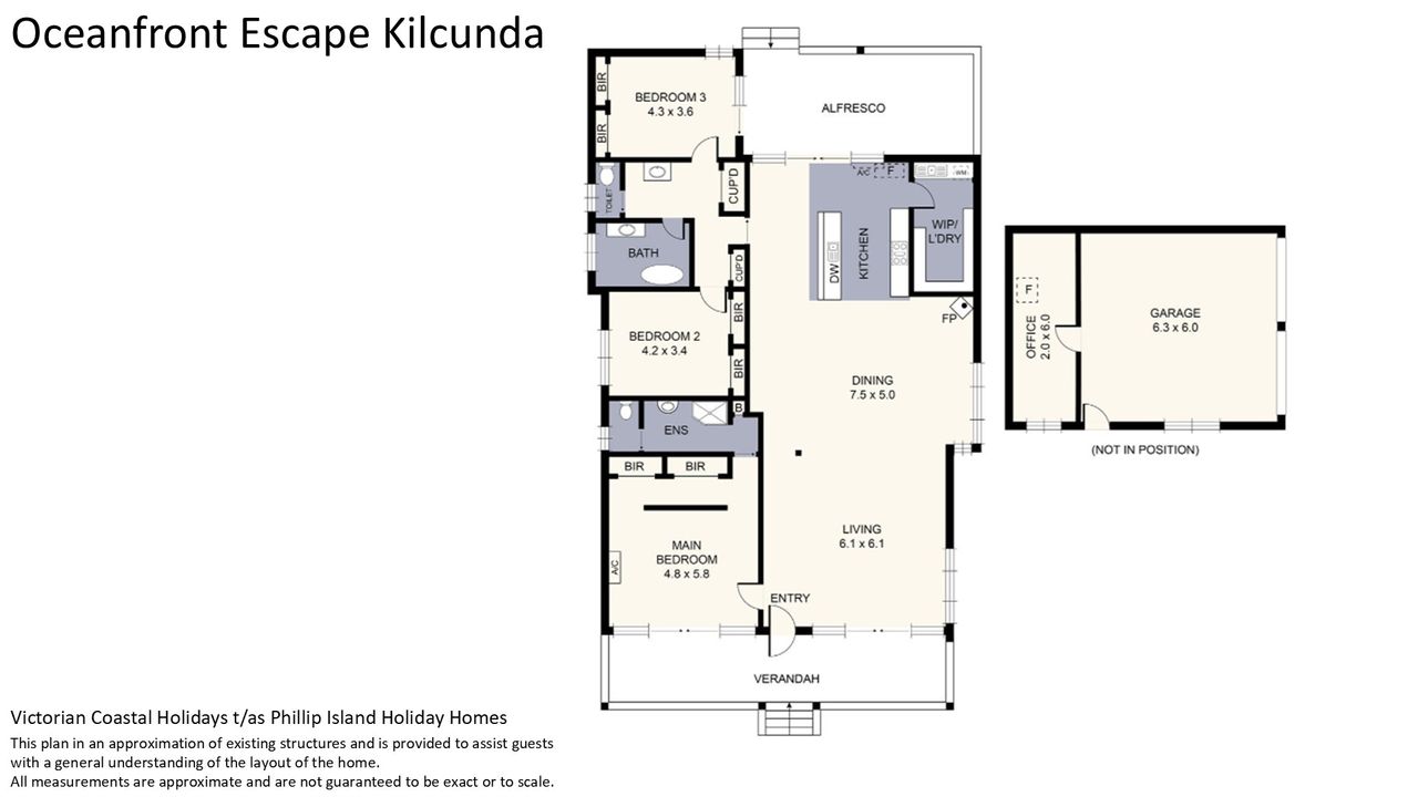 “Oceanfront Escape Kilcunda” is a delightful single-storey family [and pet-friendly XX] home in Kilcunda just 100m from the beach, a short walk from the Kilcunda General Store & pub, and a comfortable drive from the supermarkets, restaurants & cafés of San Remo. Some of the many features of this lovely home are detailed below: