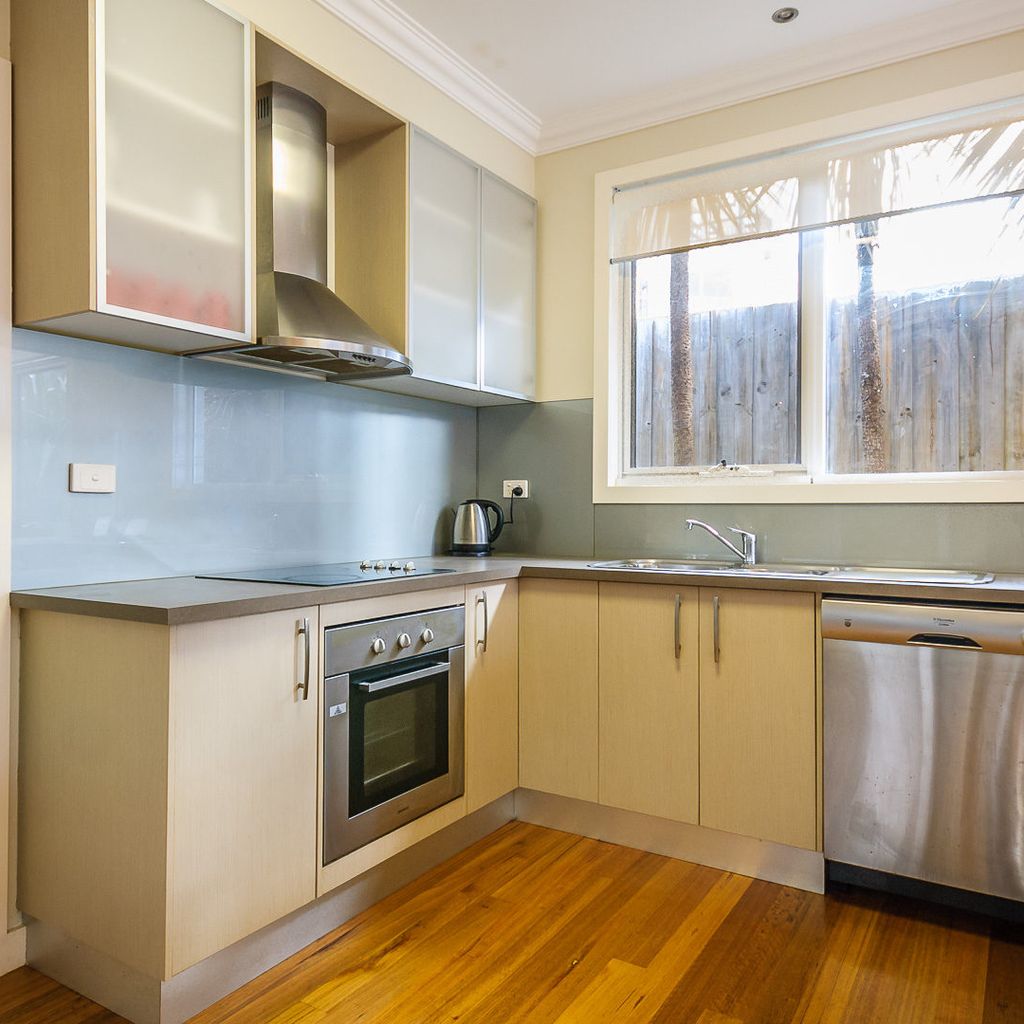 The fully enclosed rear courtyard (with gas BBQ and seating for 8) is accessed from the Dining room. There is parking for 2 cars in the double Garage, and space for another car in the driveway.