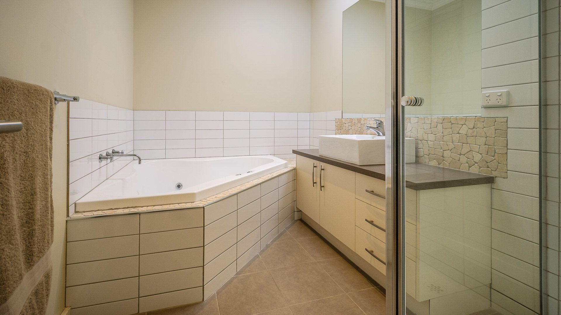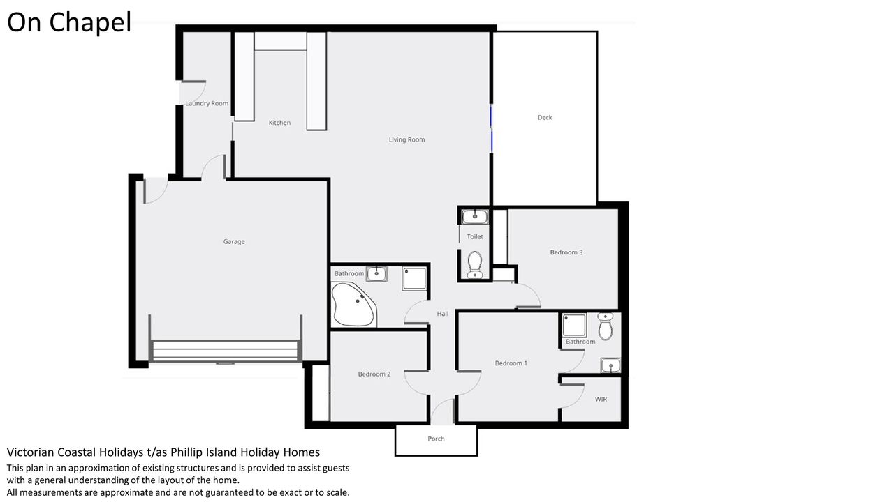 The home features an open plan Kitchen/Dining/Living area (with smart TV & DVD player) providing access to the rear Deck, Bedroom 1 with a TV, DVD player and WIR, plus an ensuite (with shower & toilet), Bedrooms 2 & 3 (each with BIR), a Bathroom (with spa bath and separate shower), a Laundry (with washing machine) and a separate Toilet. There is also internal access to the Garage.
