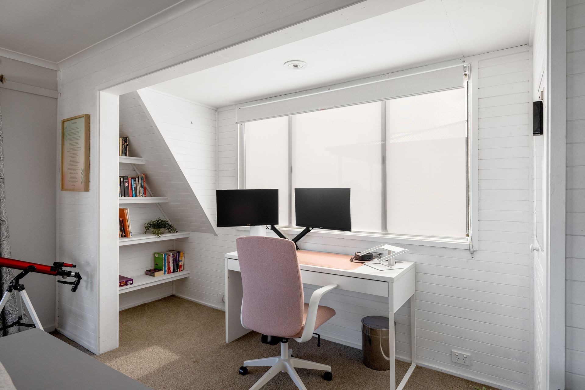 The upstairs covered Balcony (with 4 chairs and a small table) has fantastic water views over Cleeland Bight to Cape Woolamai. The fully enclosed rear yard (with gas BBQ & timber picnic table with seating for 8 people) is perfect for children with a trampoline and space to run around. There is parking for one car in the Single carport (with roller door) plus additional space for another 3 vehicles (cars and/or a boat) in the long driveway.