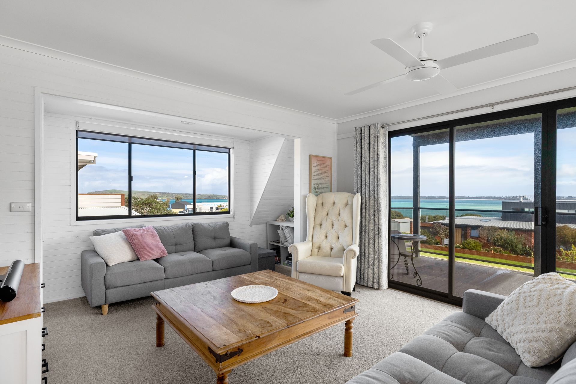 Family friendly home with beautiful water views over Cleeland Bight to Cape Woolamai, a short walk from the water, with trampoline and free WiFi