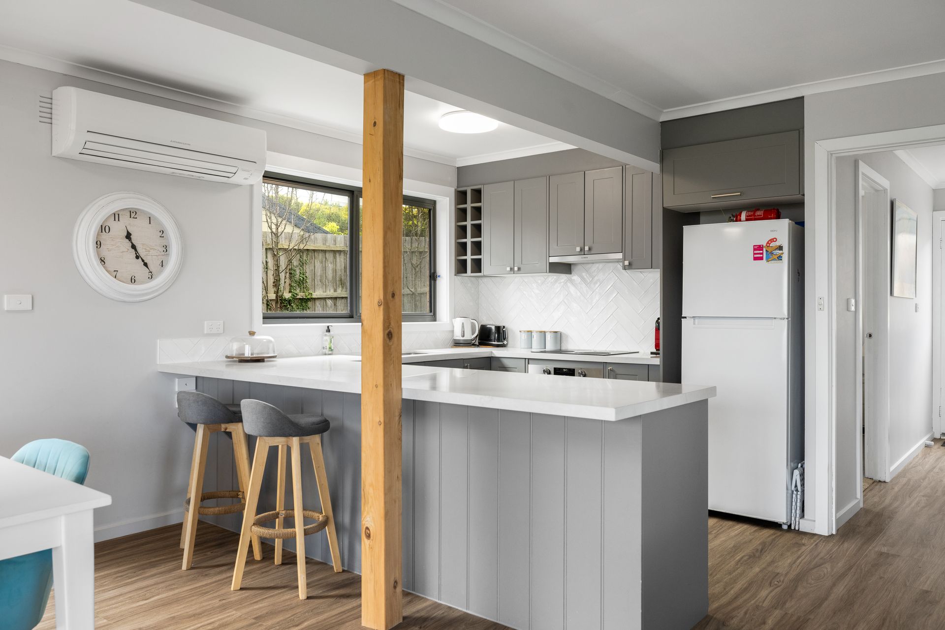 There is a wall mounted reverse cycle air conditioner in the Kitchen/Dining/Living room, ceiling fans in Bedroom 1 and the upstairs Living Room, plus 3 additional stand-alone heaters and 2 fans which can be used where required.