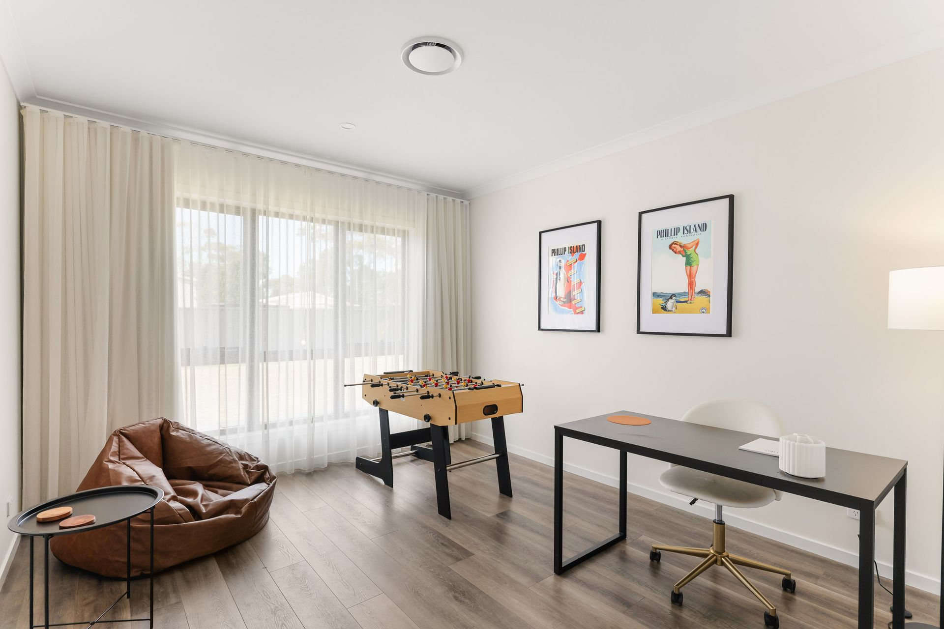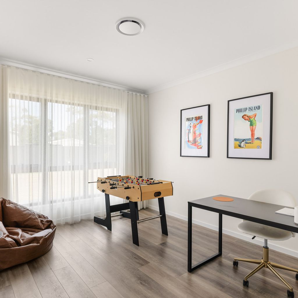 The central hallway provides access to a front Lounge Room and opens into the central open plan Kitchen/Dining/Living Room (with 60" smart TV & subwoofer) that provdes access to the rear Study/Games Room (with fuzbol table) and outdoor Living area. A side hallway provides access to Bedroom 4 (with BIR), a Bathroom (with shower & bath), a fully equipped Laundry (with washing machine, clothes dryer & separate access to the rear yard), Bedrooms 3 and 2 (each with BIR) and the rear Bedroom 1, which features a large WIR and ensuite (with shower, double vanity & separate toilet).