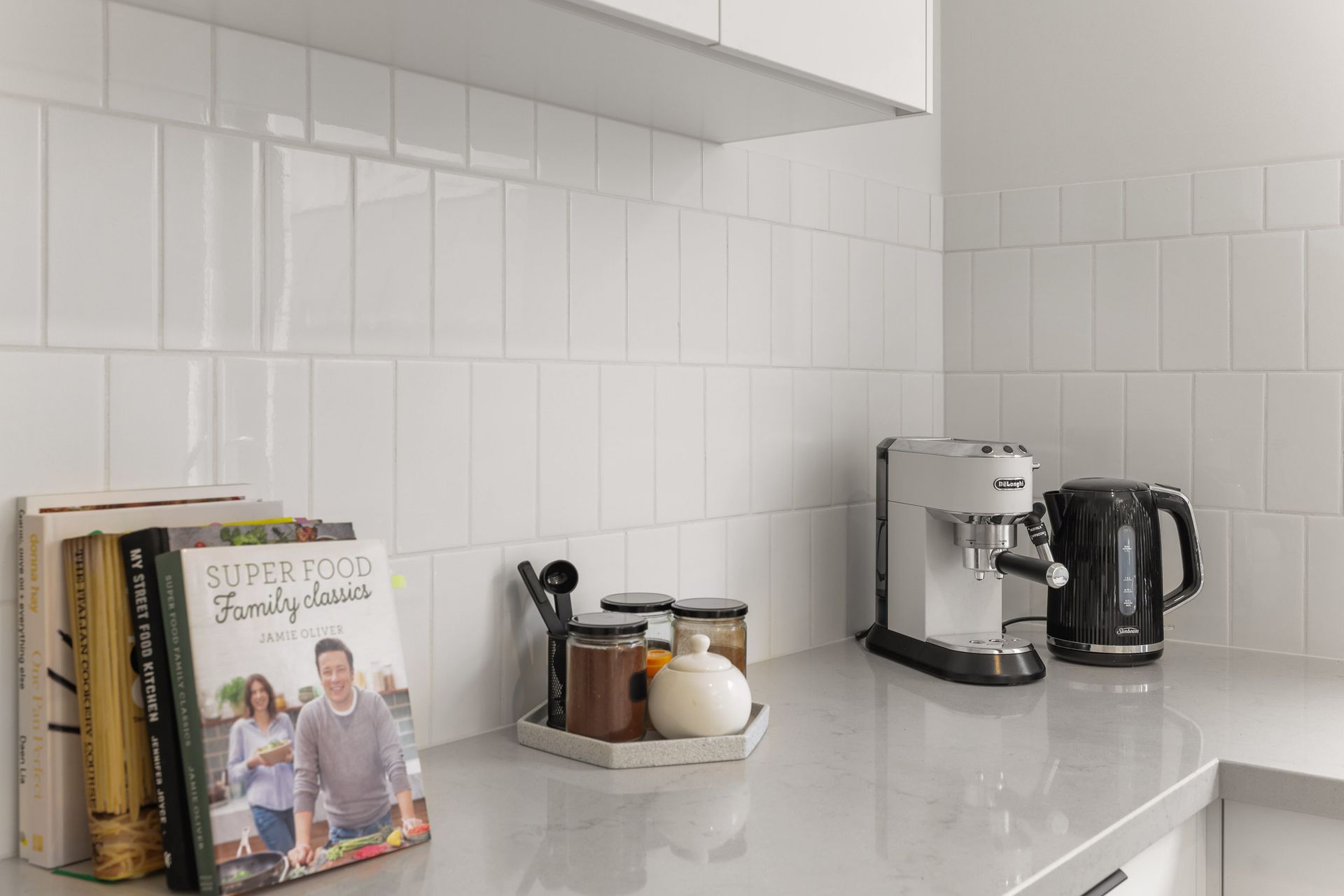 The fully appointed kitchen is equipped with cooking utensils, crockery, cutlery, microwave, Delongi coffee machine (uses ground coffee), toaster, kettle, etc. plus a double sink, plumbed fridge (with ice dispenser), dishwasher, electric oven and cook top.