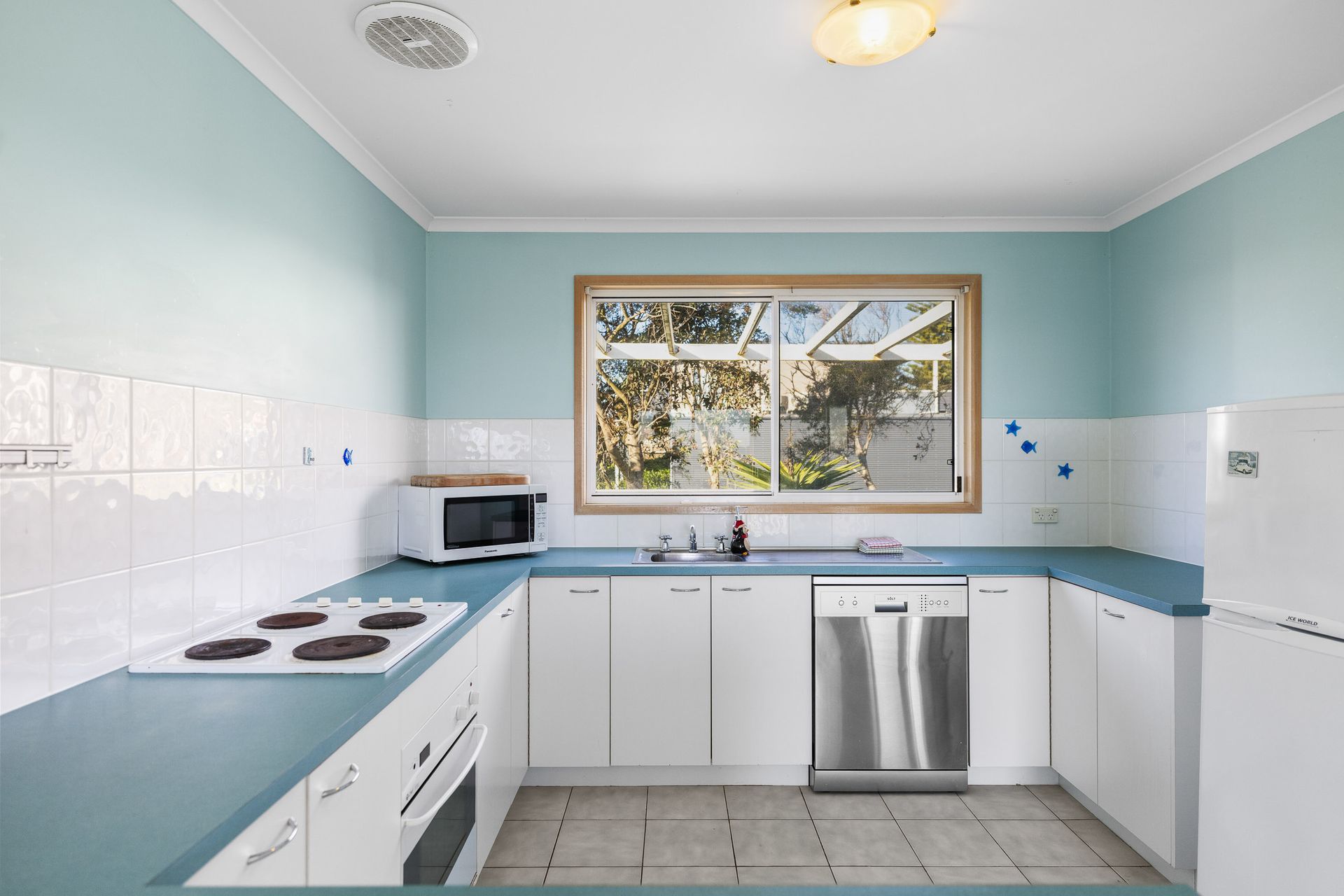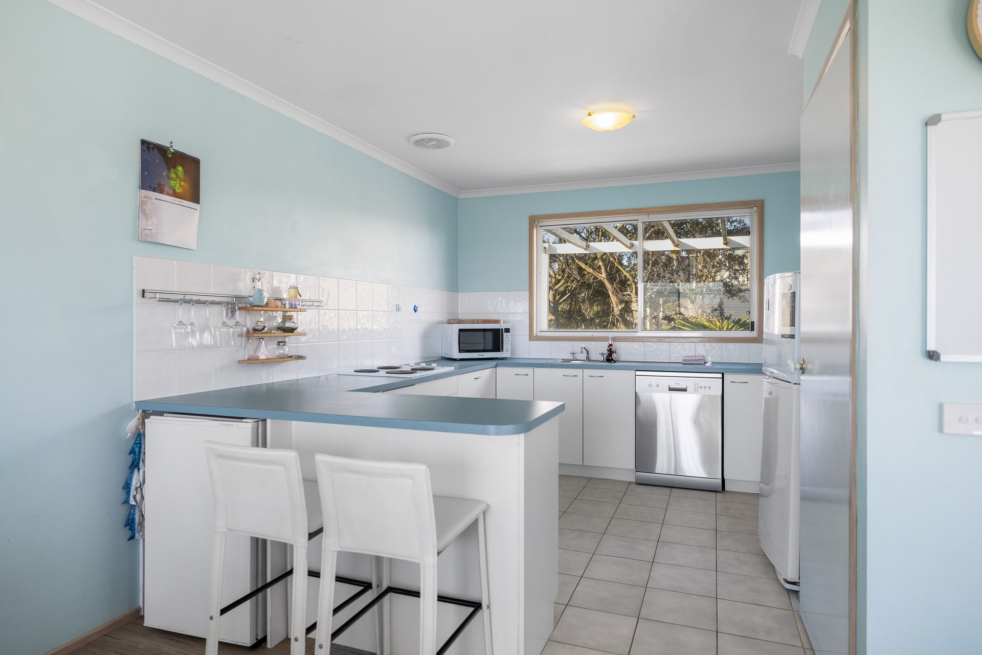 The fully appointed kitchen is equipped with cooking utensils, crockery, cutlery, microwave, toaster, kettle, Nespresso compatible pod coffee machine, etc. plus a double sink, full sized fridge plus a bar fridge, dishwasher, electric oven and cook top.