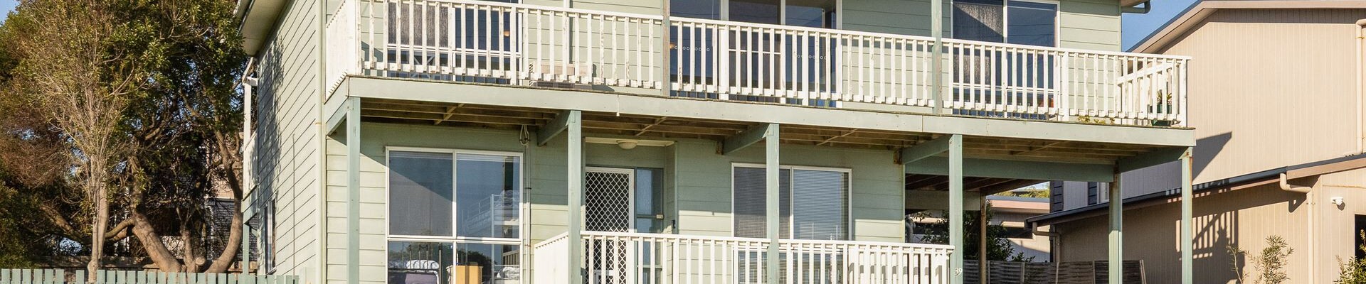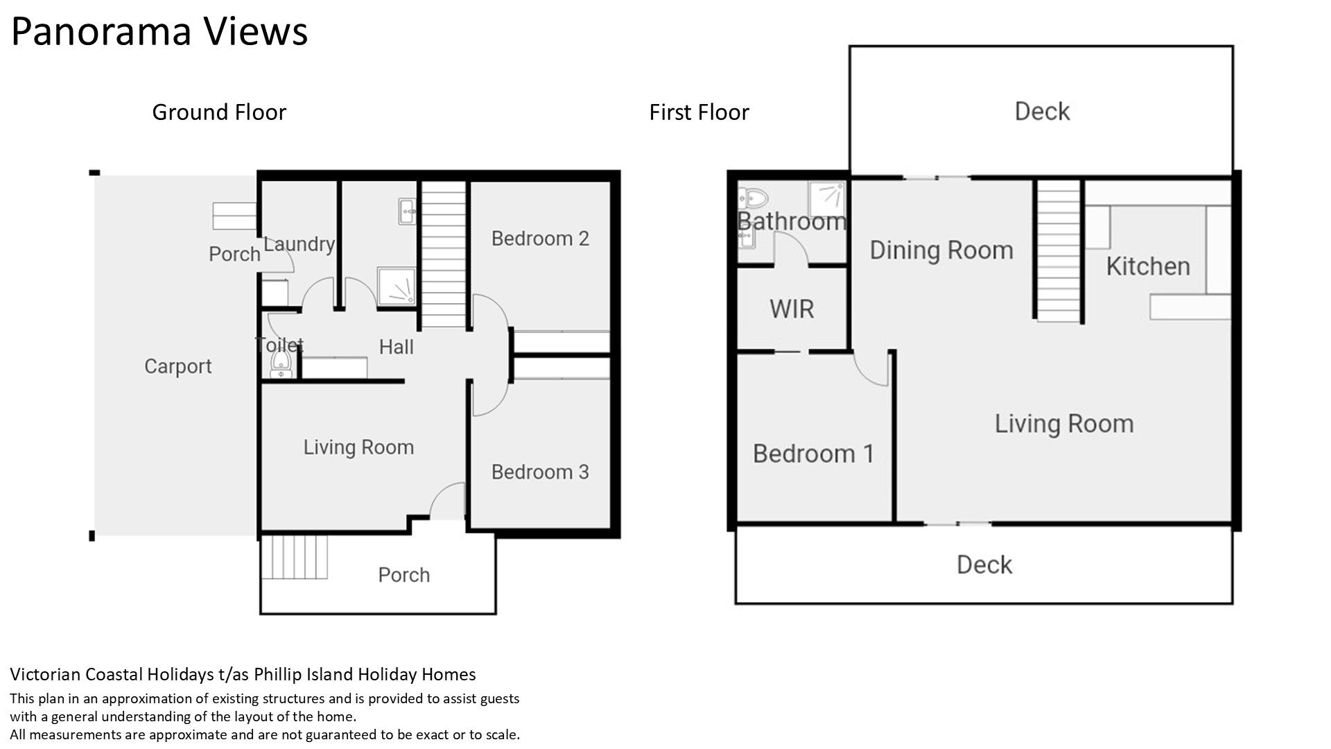 The downstairs Family Room (with 50" TV & some board games) flows through to a central hallway that provides access to Bedroom 2 and 3 (each with BIR), a Bathroom (with shower), a separate Toilet and a Laundry (with washing machine & some boogie boards) that also leads directly to the Carport. Upstairs is the huge open plan Kitchen/Dining/Living Room (with 75" smart TV & DVD player and some board games) that flows through to the front Deck, as well as Bedroom 1 which features a 65" smart TV, WIR and ensuite (with shower & toilet).