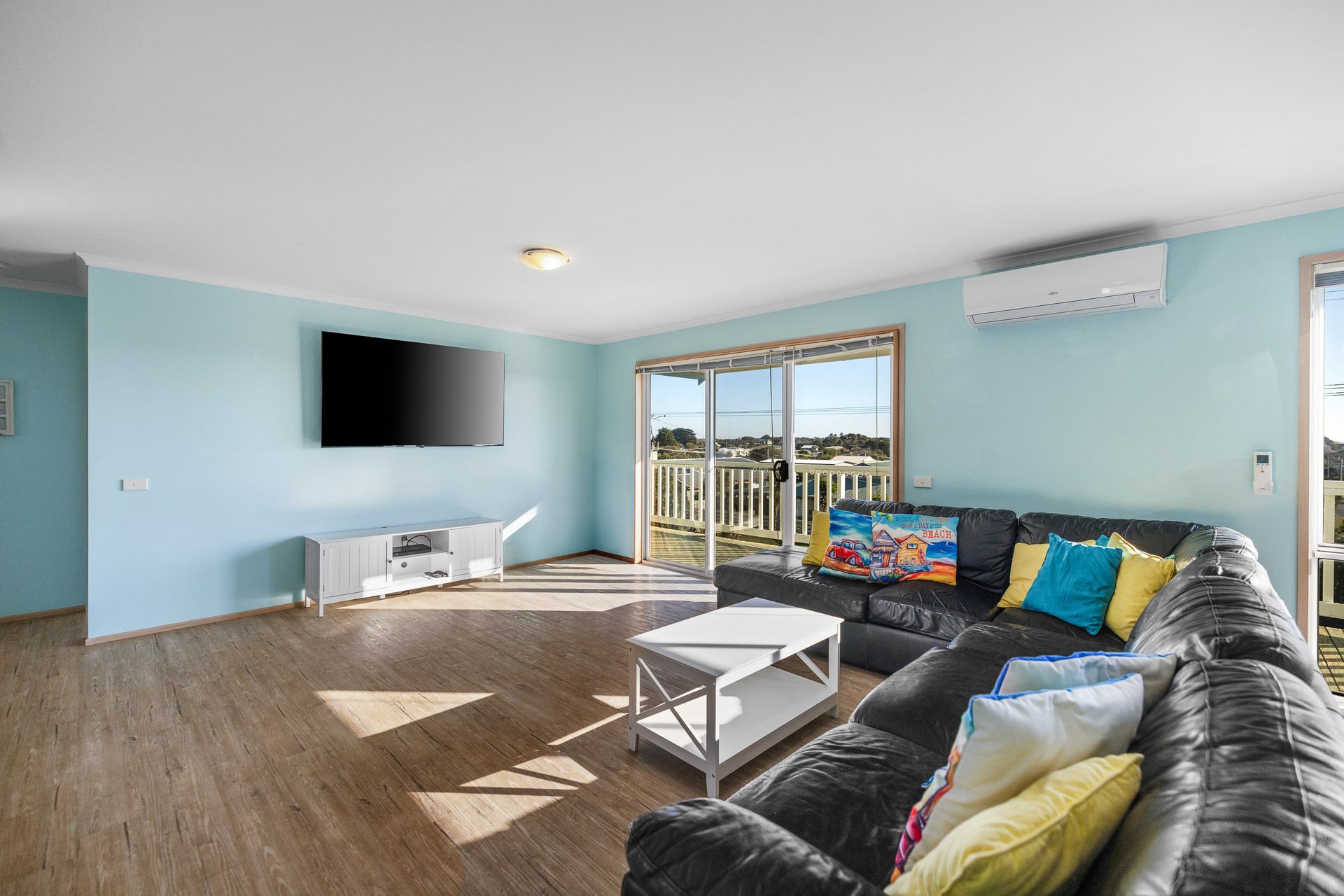 There is a wall mounted reverse cycle air conditioner in the upstairs Living room, plus two additional stand-alone heaters and three fans which can be used where required.