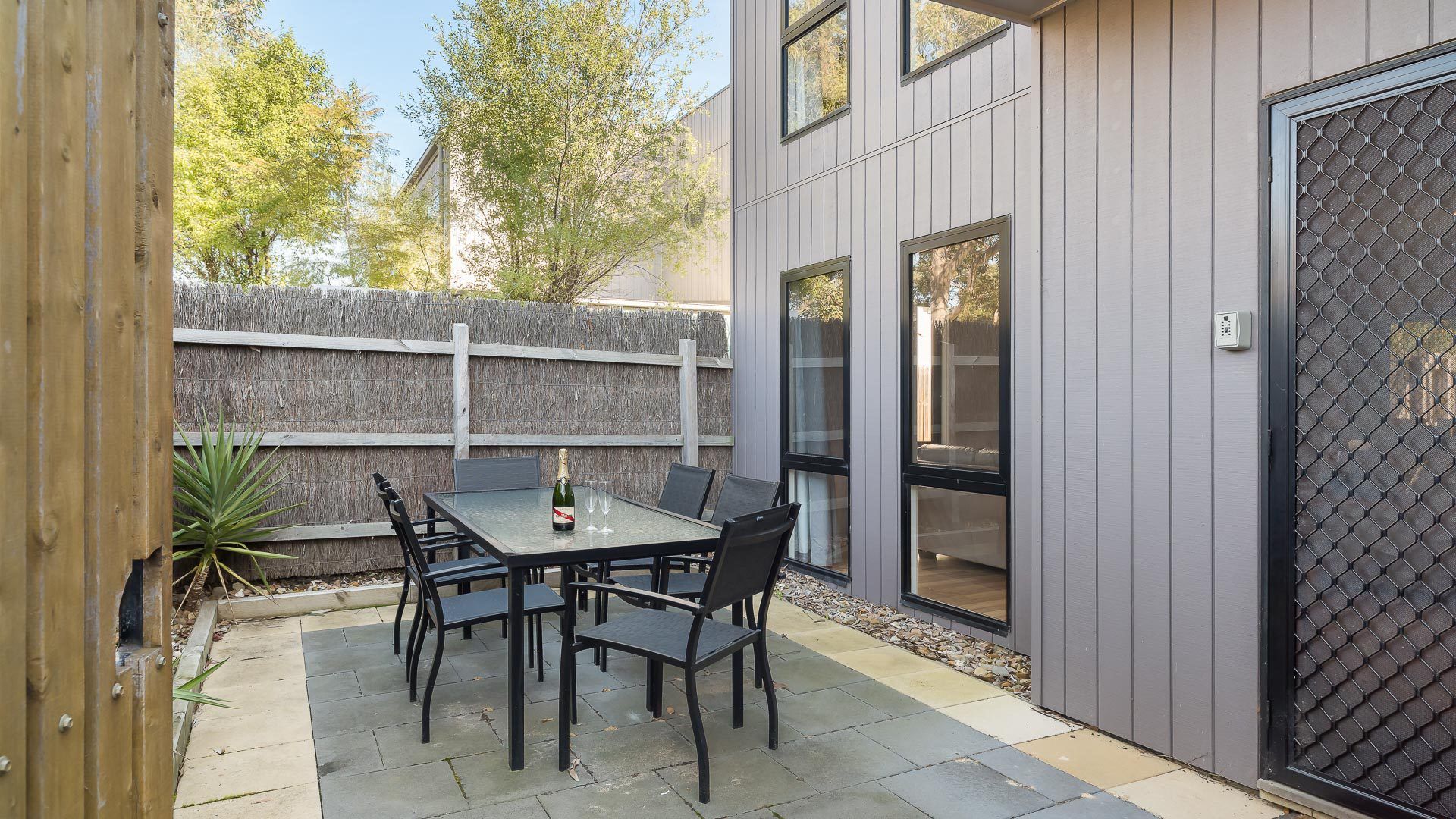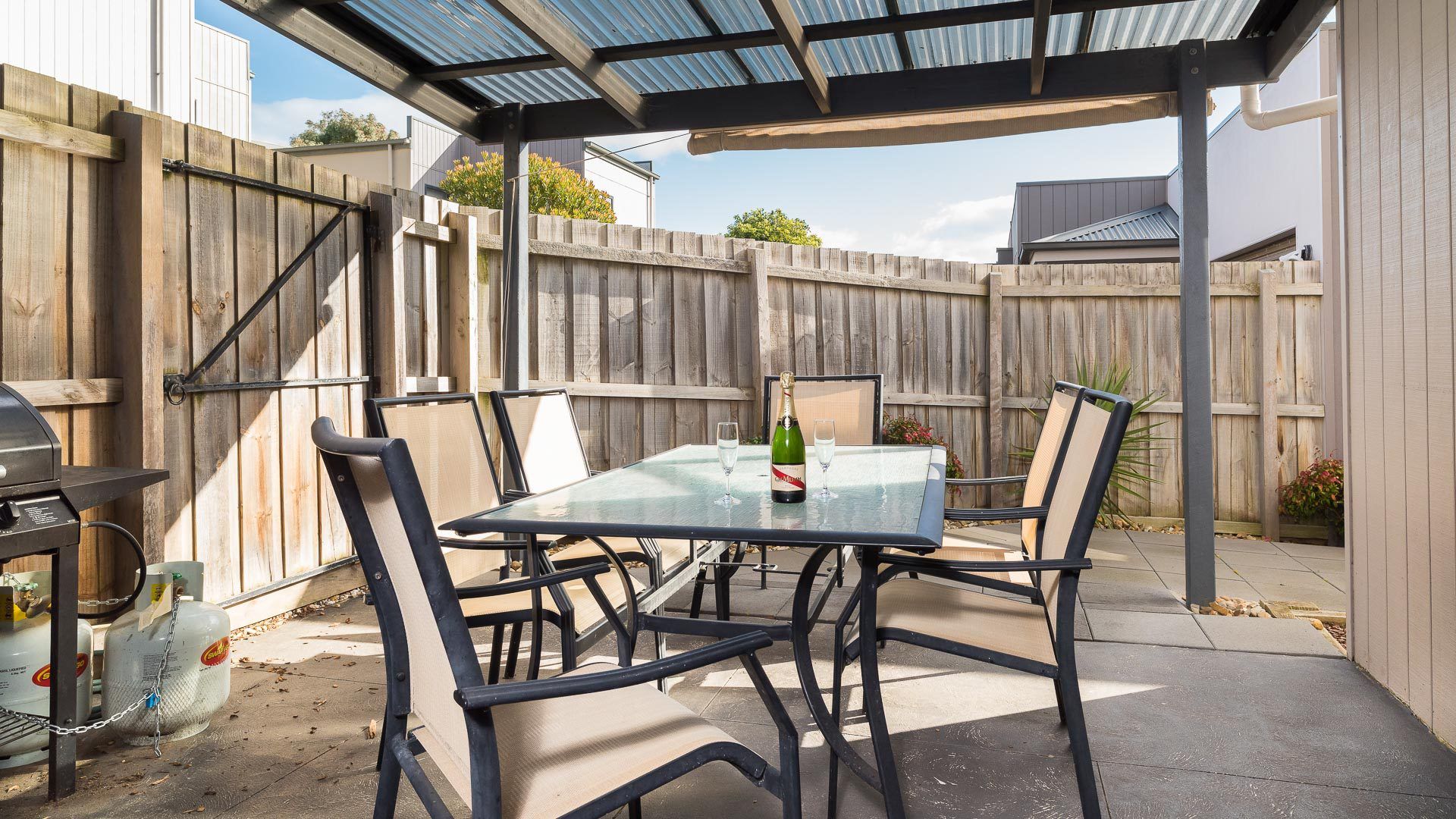 Outdoors there is a completely enclosed, undercover alfresco / courtyard at the rear (ideal for pets), equipped with a gas barbecue and outdoor setting, as well as another outdoor setting in the fully fenced front courtyard. There's a single car garage and room for another car at the front of the property, plus street parking.