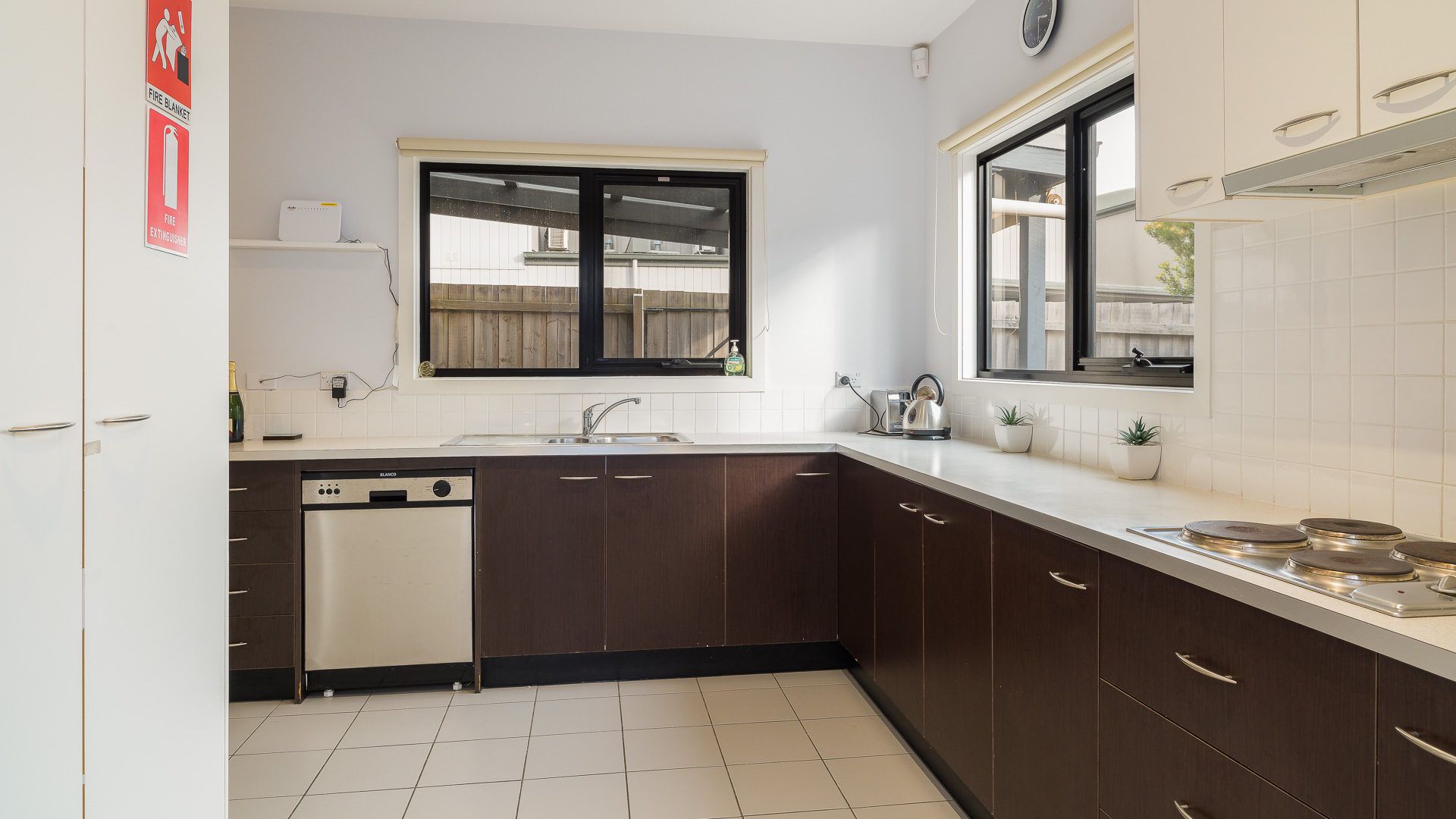 The fully appointed kitchen is equipped with cooking utensils, crockery, cutlery, microwave, an Nescafe Dolce pod coffee machine, toaster, kettle, etc. plus a double sink, fridge, dishwasher, electric oven, and separate cook top.