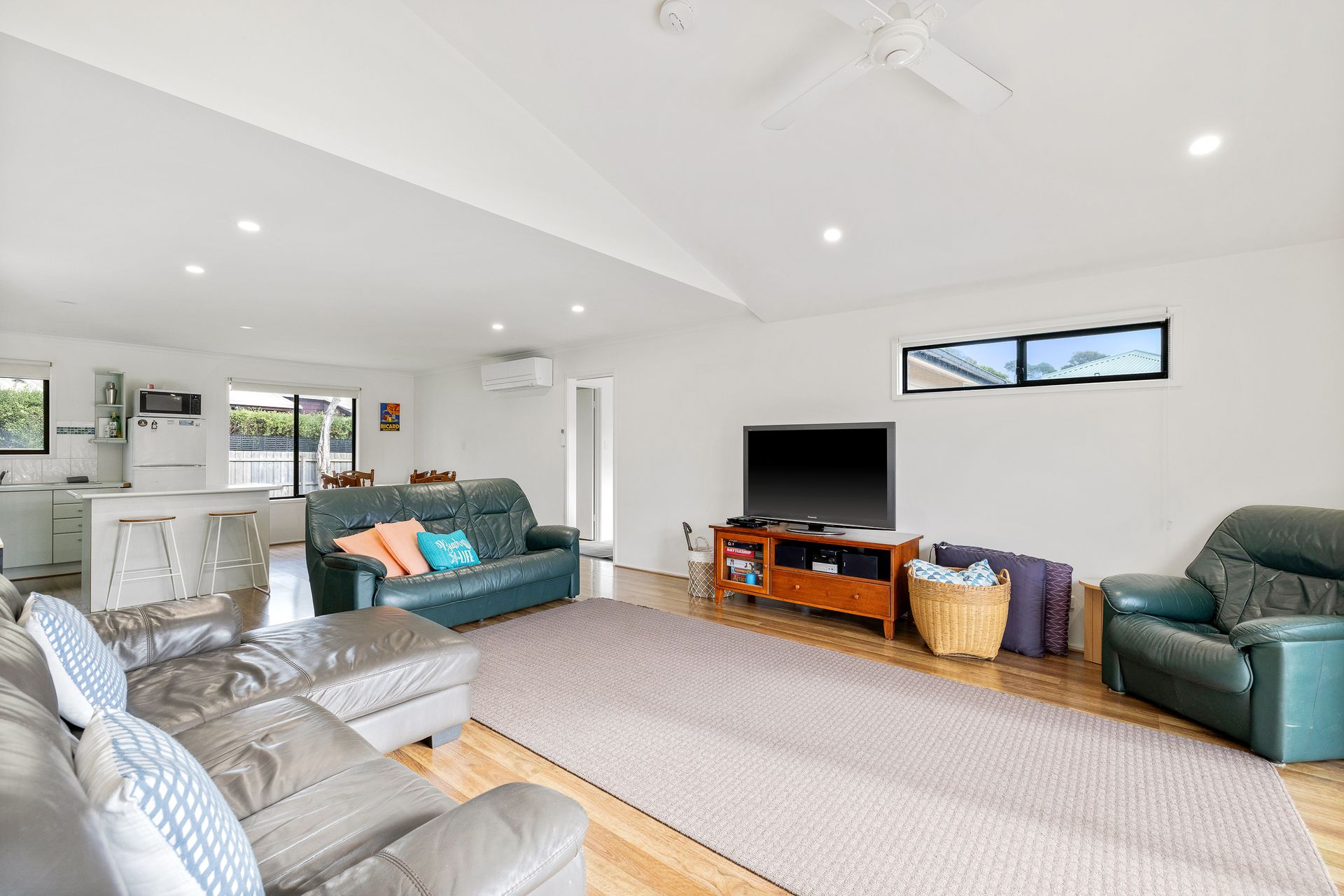 There is a wall mounted reverse cycle air conditioner in the Living room, ceiling fans in Bedroom 1 and the Living Room, plus two additional stand-alone heaters and three fans which can be used where required.