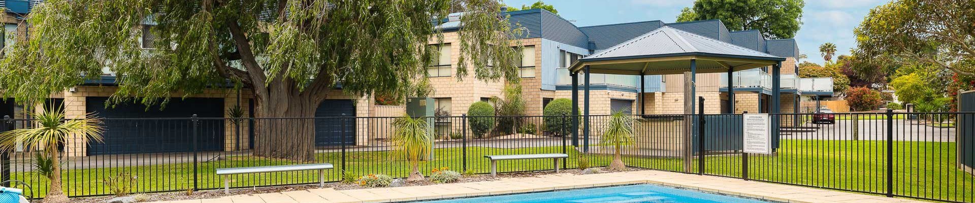 The home has both a Balcony on the first floor as well as an enclosed rear courtyard. The double Garage (with internal access into the home) provides space for 2 cars. The shared facilities available include a solar-heated in-ground pool and shady BBQ area, plus some additional communal parking spots available on a first-come, first-served basis.