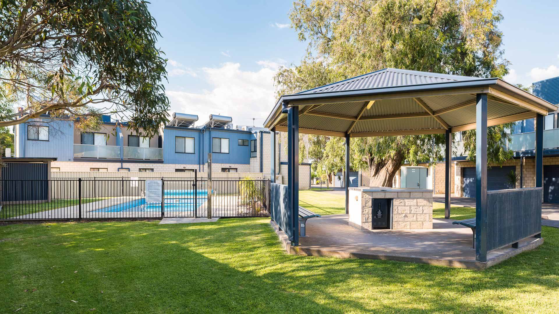 The home has both a Balcony on the first floor as well as an enclosed rear courtyard. The double Garage (with internal access into the home) provides space for 2 cars. The shared facilities available include a solar-heated in-ground pool and shady BBQ area, plus some additional communal parking spots available on a first-come, first-served basis.