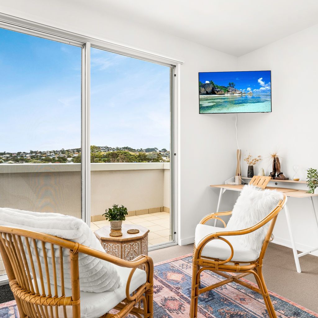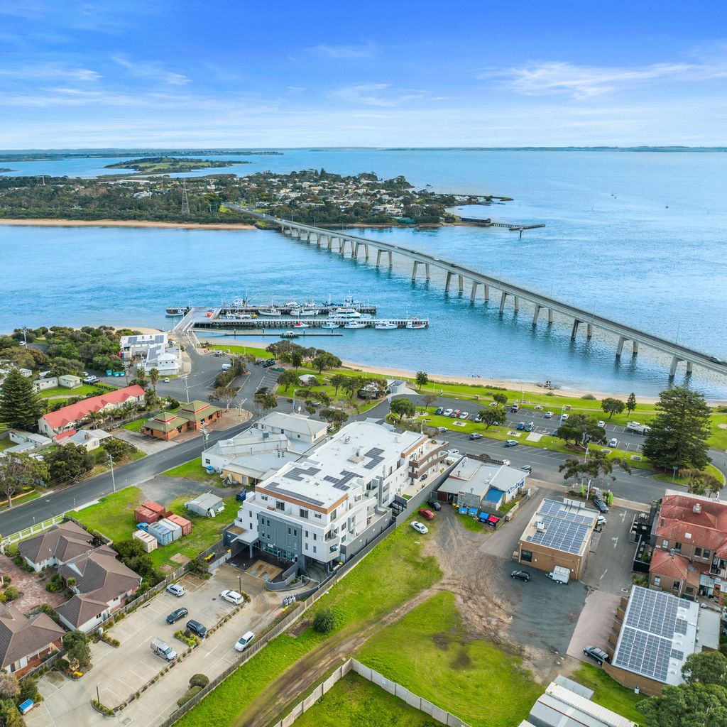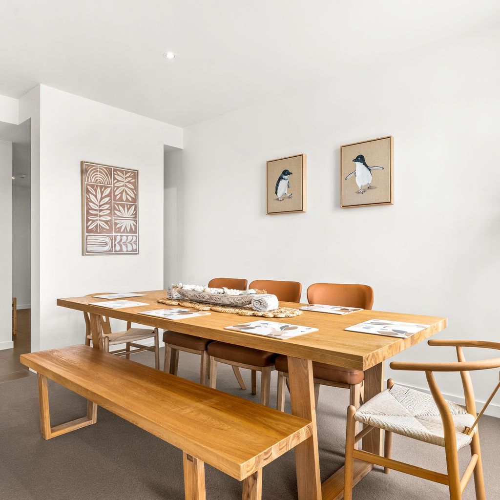 Picture this… Having parked your car/s in the secure underground carpark and taken the lift to your top floor apartment, your only decision is whether to have your first relaxing drink on the front balcony, overlooking the “Bridge” and Westernport Bay, or on the generous back balcony, that provides a view of the sea and sandy hills of Cape Woolamai, where the sun will set.