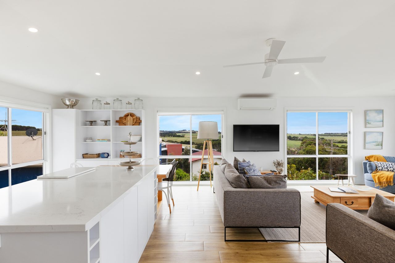 “Peppermint Lookout” is a delightful double-storey family home in Kilcunda just a short walk from the beach and Kilcunda General Store & Pub, and a comfortable drive to all the supermarkets, restaurants & cafés of San Remo. Some of the many features of this lovely home are detailed below: