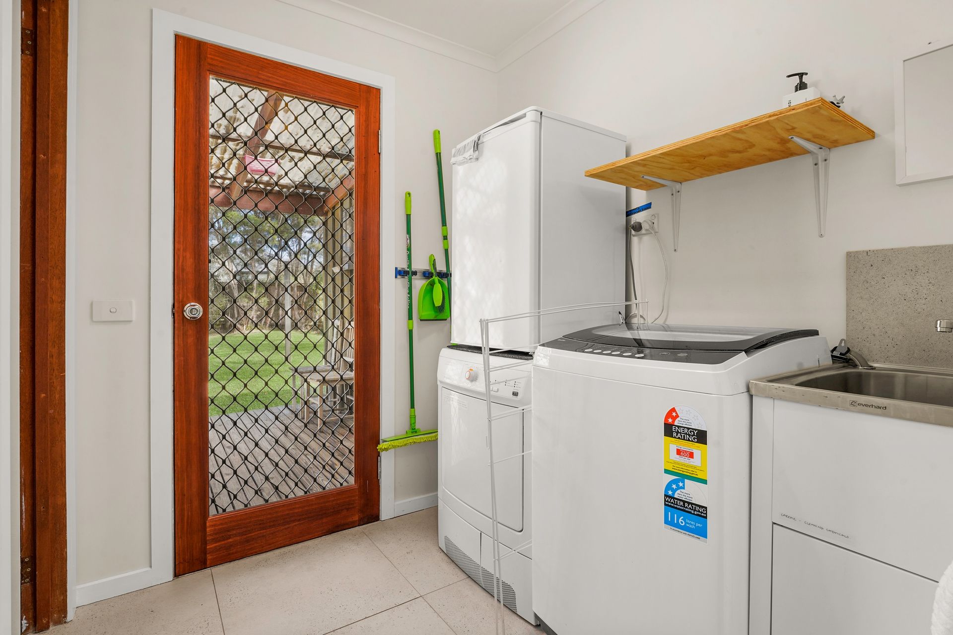 The fully appointed kitchen is equipped with cooking utensils, crockery, cutlery, microwave, drip coffee machine, toaster, kettle, etc. plus a double sink, fridge, dishwasher, electric oven and induction cook top. There is also a 120L bar fridge in the laundry.