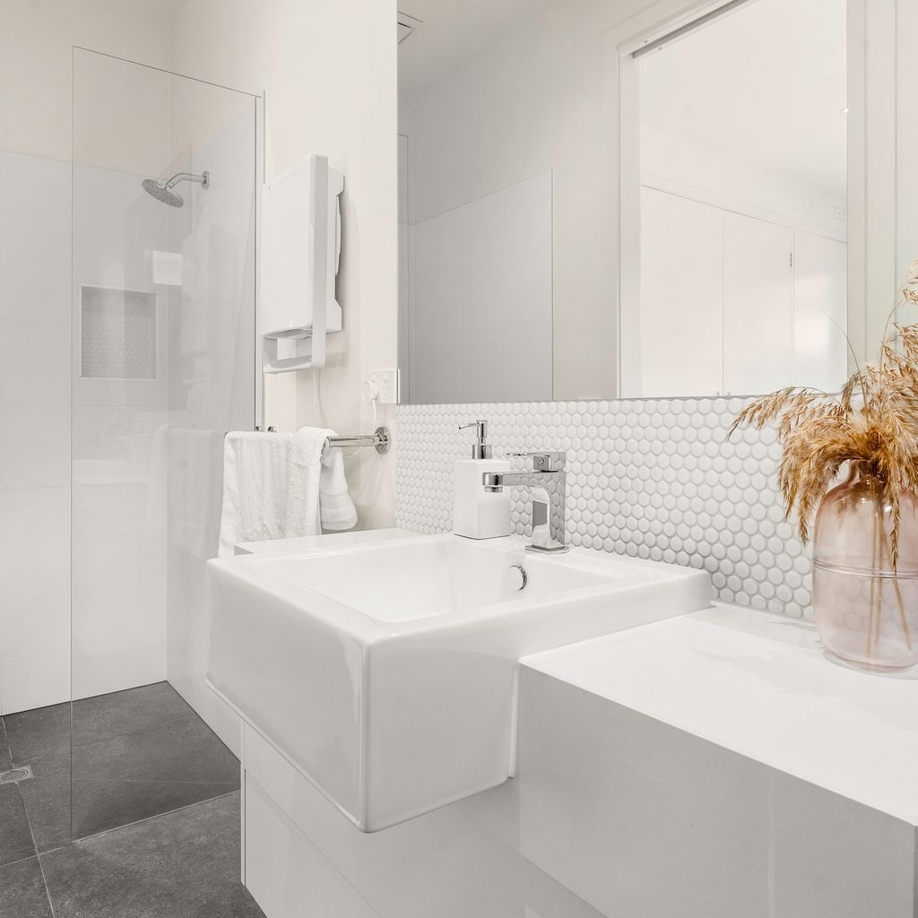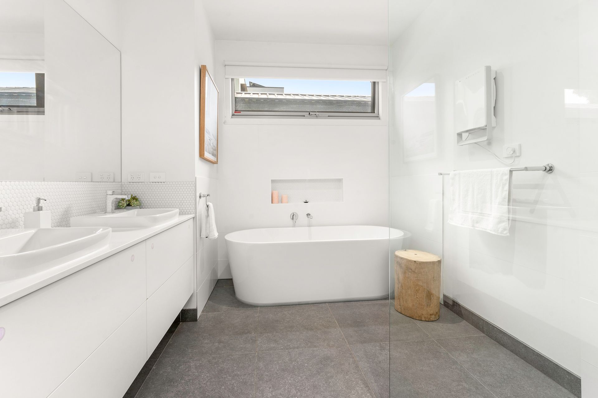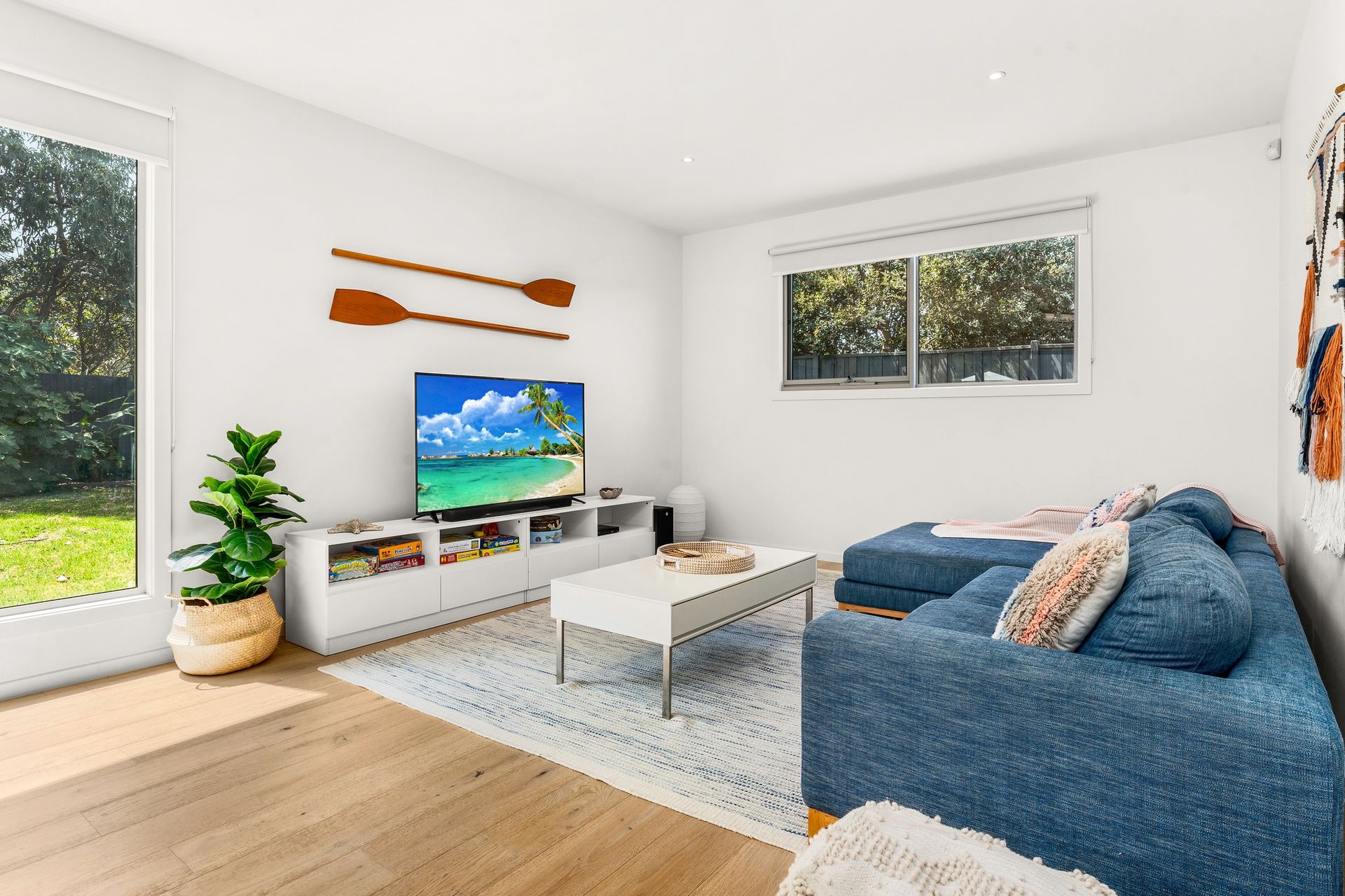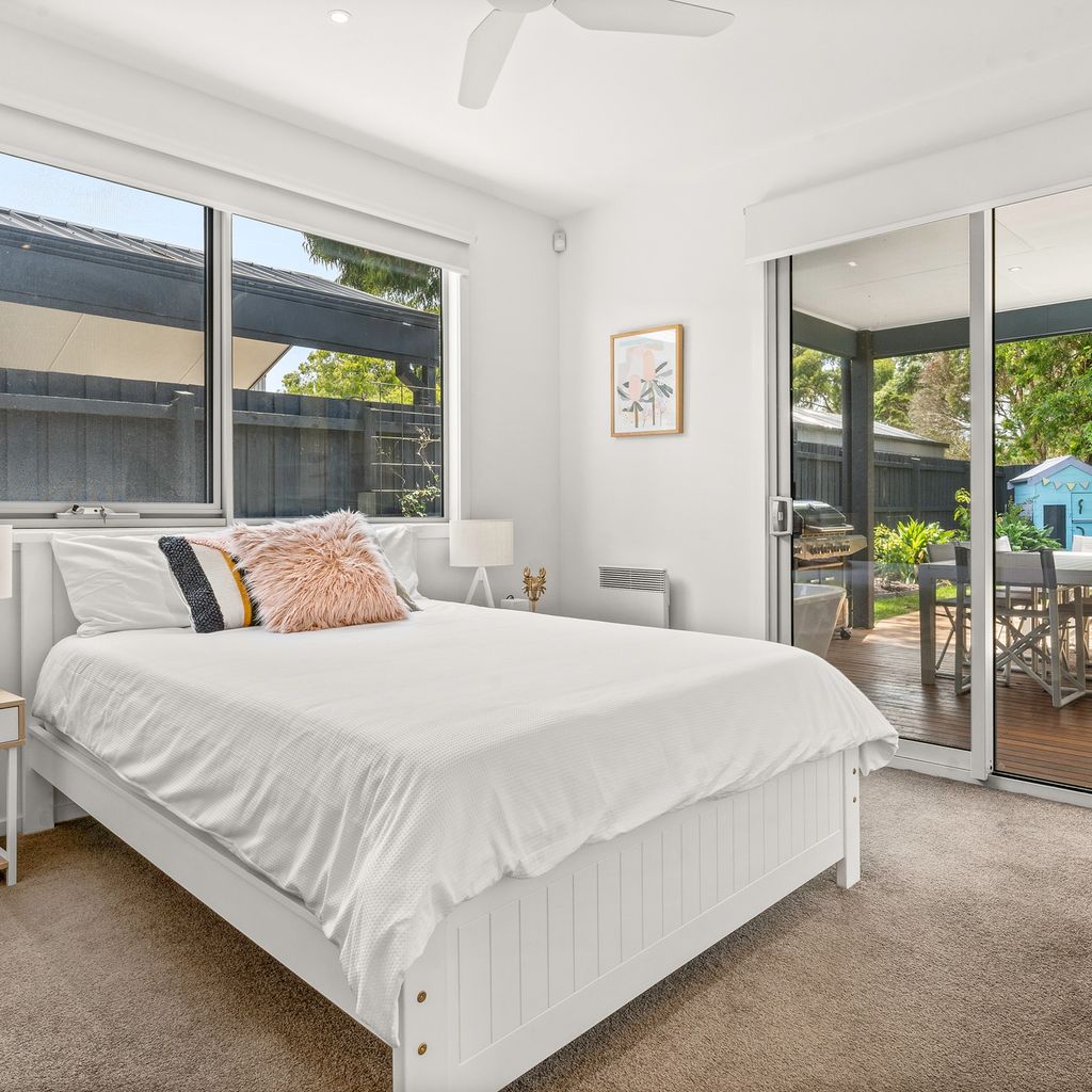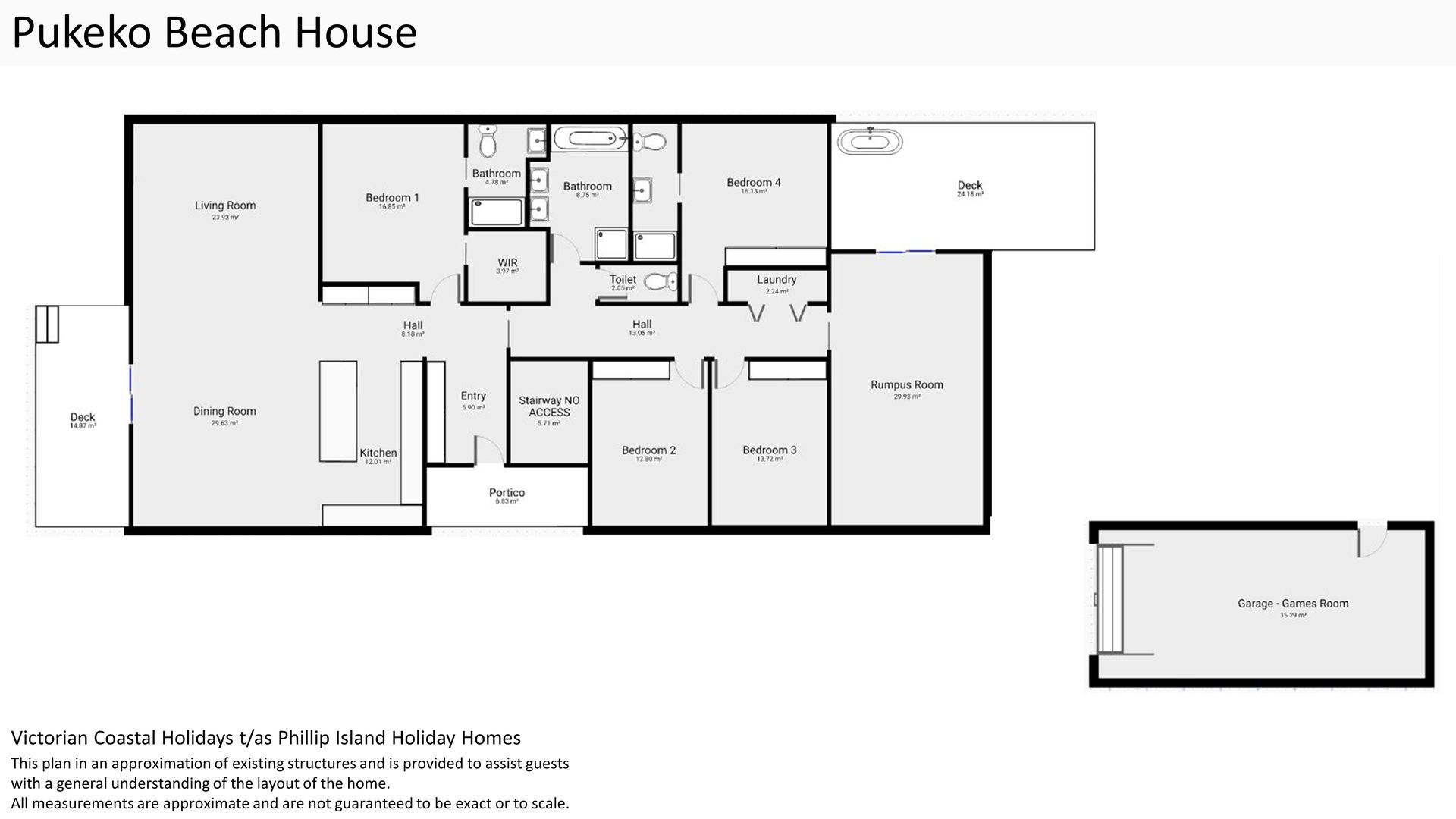 The rear covered deck (with table & chairs for 9 people, 2 x Lounge chairs & a gas BBQ) has a delightful outdoor heated bath with spa jets as well as a heated outdoor shower. The generous fully enclosed backyard is perfect for children and features a cubby house for the kids. The Single garage has been converted into a Games Room with a table tennis table, darts, kayaks, fishing rods, outdoor games and beach equipment. The long driveway can fit up to 4 cars plus there is room to park a boat in front of the house also.