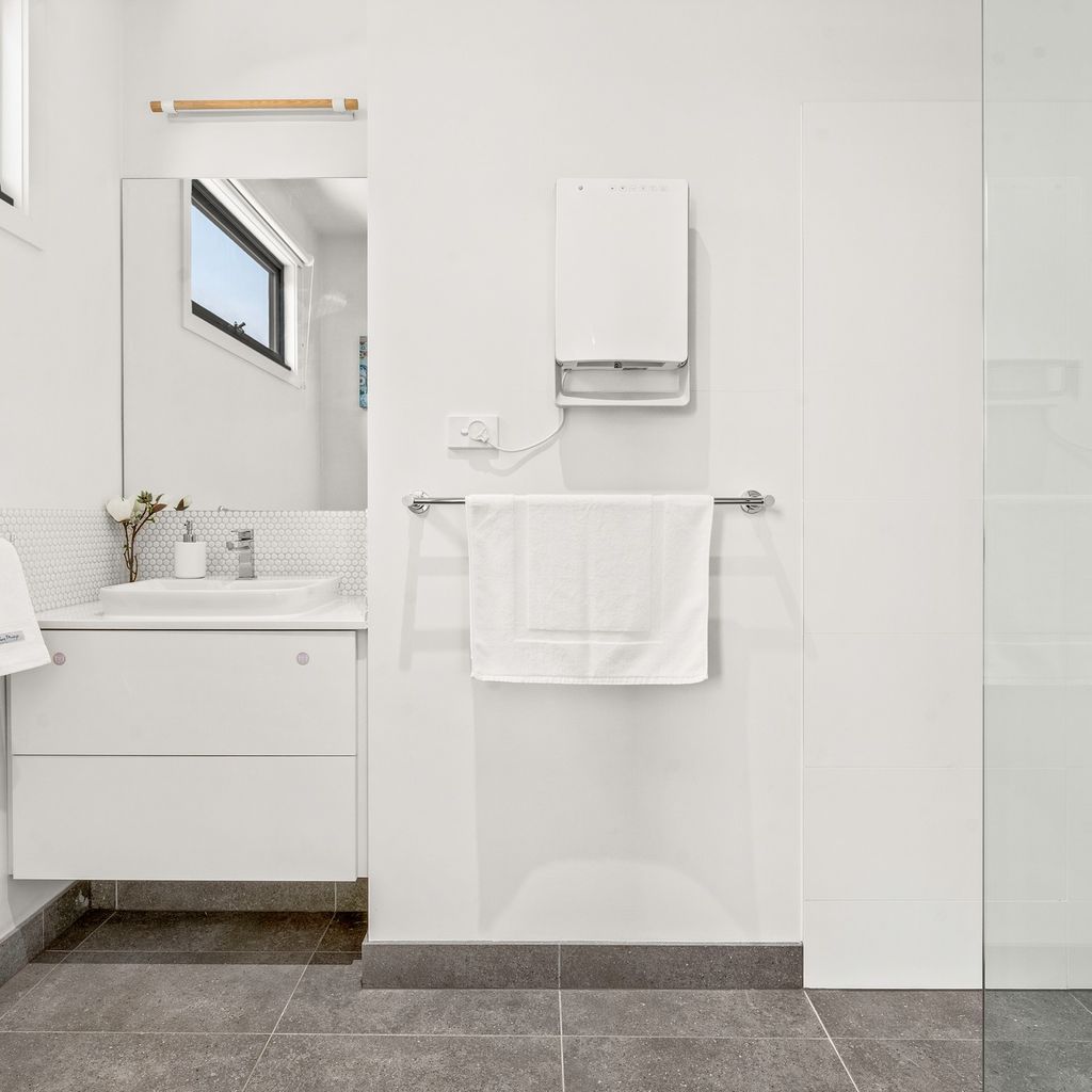 There are 2 wall mounted reverse cycle air-conditioners; one in the front Living/Kitchen/Dining Room and the other in the rear Rumpus Room, ceiling fans in all 4 bedrooms, plus wall mounted electric heating in all bedrooms and bathrooms. The front Living Room also has a cosy gas open fireplace.