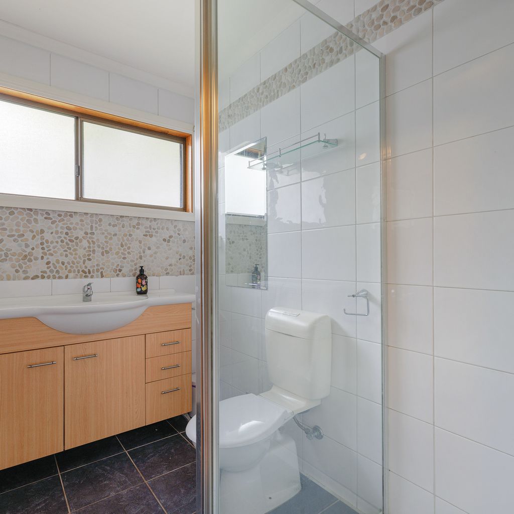 The fantastic large covered rear deck (with gas BBQ, table & chairs for 8, 2 additional relax chairs and a hammock) is perfect for relaxing/entertaining, and overlooks the fully enclosed yard which is perfect for children and dogs alike (no cats please). The deck also features a convenient shower base with hot/cold water to wash off after the beach (for people & pets), and there is a large dog enclosure in the rear yard too (with bed & bowl provided). There is no access to the shed, but plenty of space for 2 cars on the front driveway and additional space for 1-2 more vehicles (cars and/or a boat) in the rear yard.
