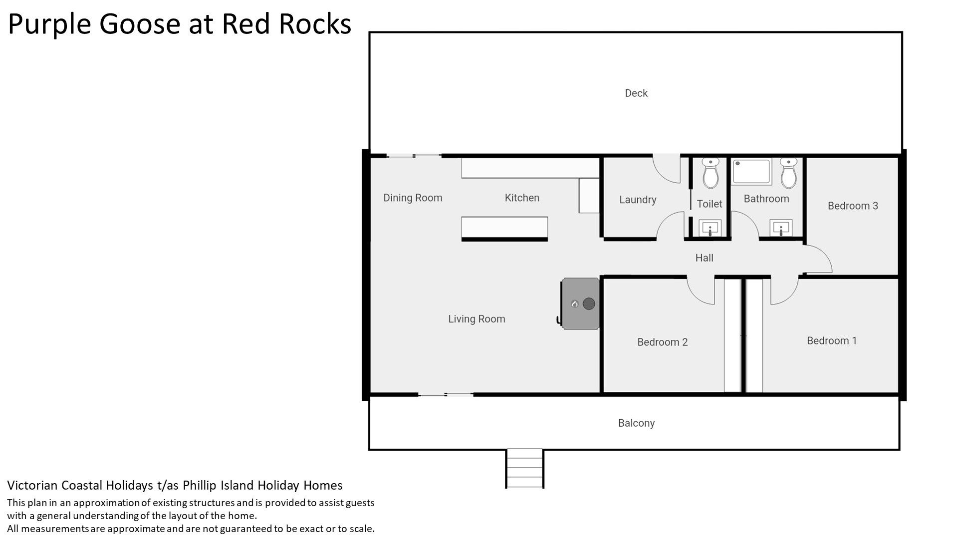 “Purple Goose at Red Rocks” is a delightful single-storey family home in Cowes just a comfortable walk from the Red Rocks beach and a short drive from the supermarkets, restaurants & cafés of Cowes. Some of the many features of this lovely home are detailed below: