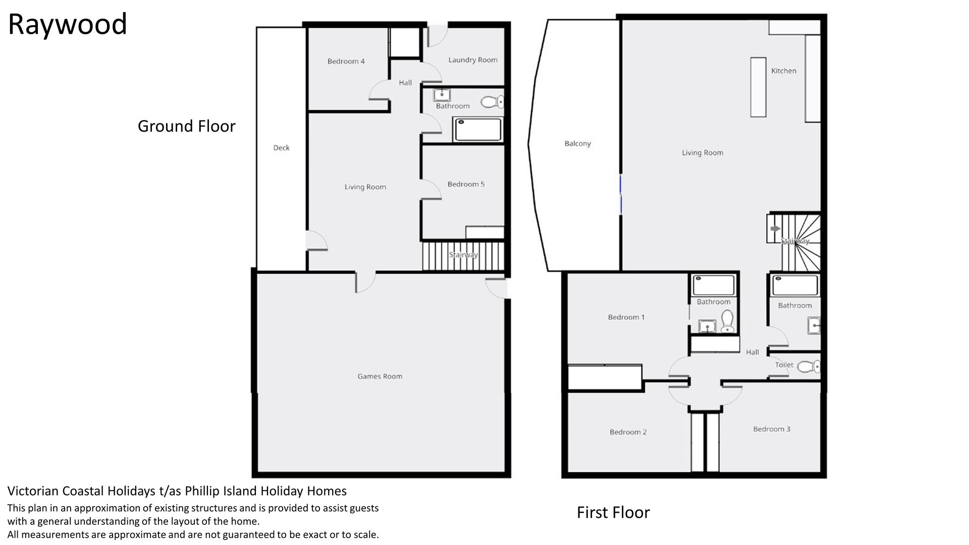 Downstairs contains a further two bedrooms, another living area (with TV & DVD player leading onto another deck, a bathroom (with bath over shower plus toilet) and a fully appointed laundry. Lastly, you will find the hero of the home - the vast games room containing a pool table, a table-tennis table, ample seating, TV, another fridge, plus a huge library of books, games, and DVDs for you to choose from.