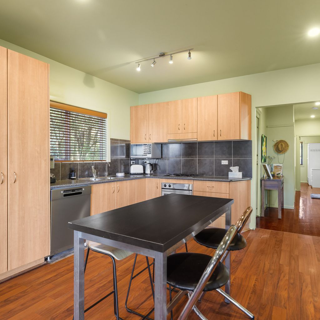 A central hallway provides access to Bedroom 2 and 3 (each with wardrobes & storage drawers), a Bathroom (with a shower over the bath & toilet), a Rumpus Room (with smart TV, Coonara-style wood heater plus plenty of kids toys & games) and through to the lovely bright large open plan Kitchen/Dining/Living Room (with smart TV & bluetooth speakers). The Laundry (with washing machine) is accessed from outside the home. Upstairs is another large Living Room (with smart TV), Bedroom 1 (with BIR) and a Bathroom (with shower & toilet).