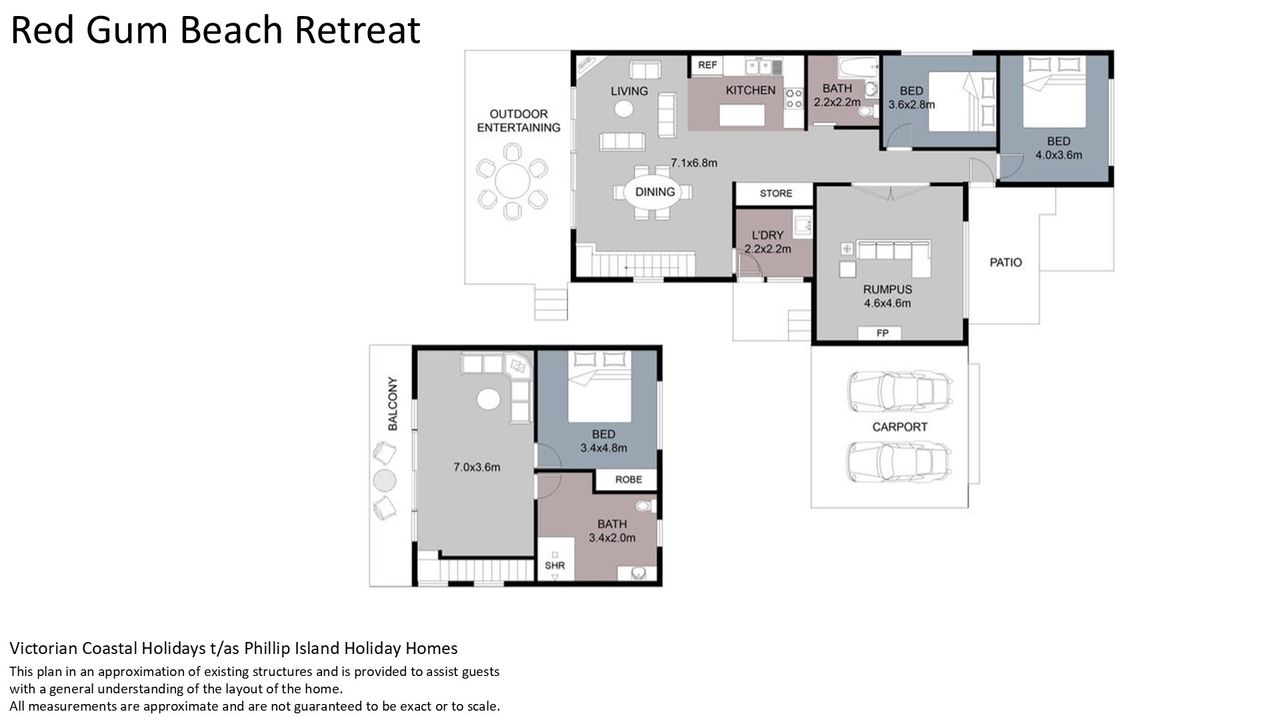 “Red Gum Beach Retreat” is a delightful double-storey family & pet friendly home in the Red Rocks area of Cowes, just a comfortable walk from the pet friendly beaches and short drive to the supermarkets, restaurants & cafés of Cowes. Some of the many features of this lovely home are detailed below:
