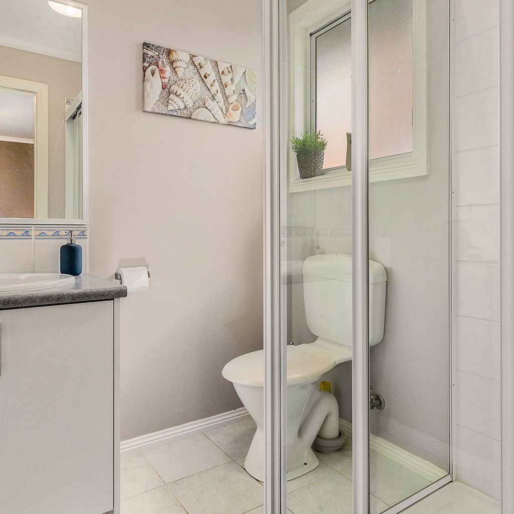 The sunny undercover back deck, which is accessed through the living room, overlooks the fully enclosed rear and back garden where children and pets can safely play. You also find a 10 seater dinning set as well as a gas bbq on the deck. There’s also a hot & cold water shower. The home delivers plenty of parking for cars, motorcycles or boats, with an undercover double carport and a driveway, you can park 3 cars.