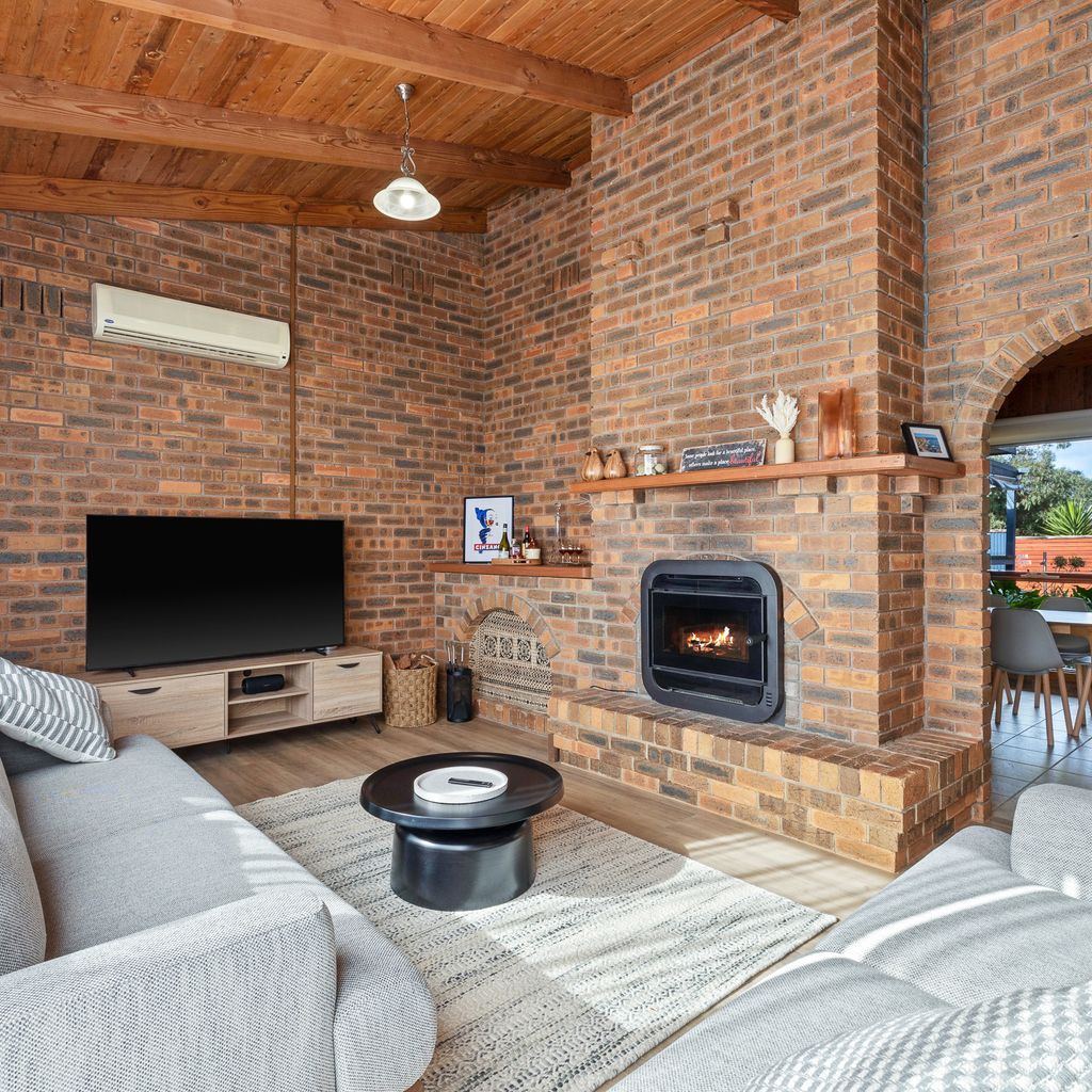 The house is well airconditioned with new split systems from end to end that ensures the even flow of cool air into each room and throughout. There are 4 split system units dispersed around the house; one in each of the front Lounge Room, rear Living Room, Bedroom 1 and in the hallway outside Bedrooms 2, 3 & 4. There is also a wood fireplace in the Lounge Room (no kindling or wood provided).