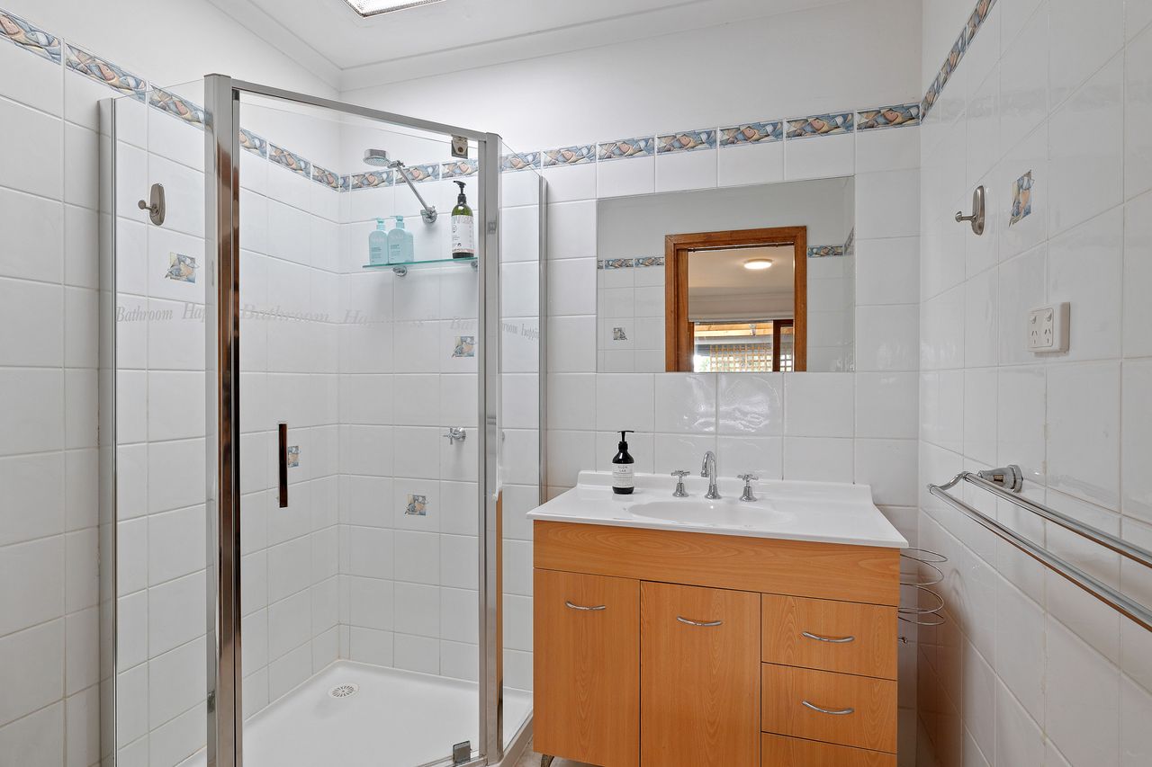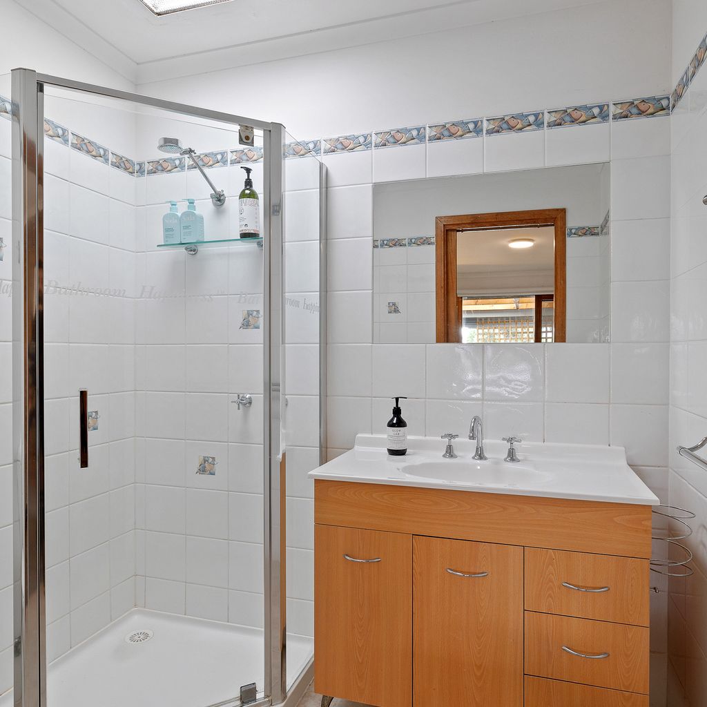 The rear covered deck (with table & chairs for 10 people plus a gas BBQ) overlooks the fantastic private in-ground solar heated swimming pool (6.0m x 2.55m, 1.3m - 1.6m deep). The large rear yard is fully enclosed (perfect for children) and has a large shed with a table tennis table. The double carport at the front of the home provides parking for 2 cars, with space for another car in the driveway and a boat can be parked next to the driveway.