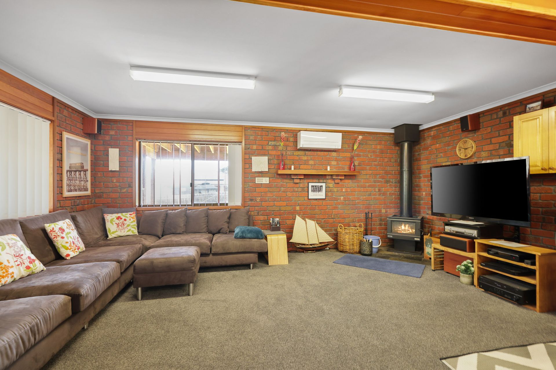 Downstairs is a large Living Room (with 65" smart TV, Foxtel box, Fuzbol table & coonara-style wood heater) featuring a fantastic bar area, that flows out to the side Patio. Also off this room are Bedroom 4 (with BIR) and a Bathroom (with shower, toilet & a 2nd full sized fridge/freezer). Upstairs is the open plan Kitchen/Dining/Living Room (with 51" smart TV, Foxtel Box, Sony soundbar, DVD player, selection of movies, a dartboard & a coonara-style wood heater) that provides access to the upstairs Deck and leads to Bedroom 1 (with TV), Bedrooms 2 & 3 (each with BIR), a Laundry (with washing machine) and a Bathroom (with shower) and a separate Toilet.