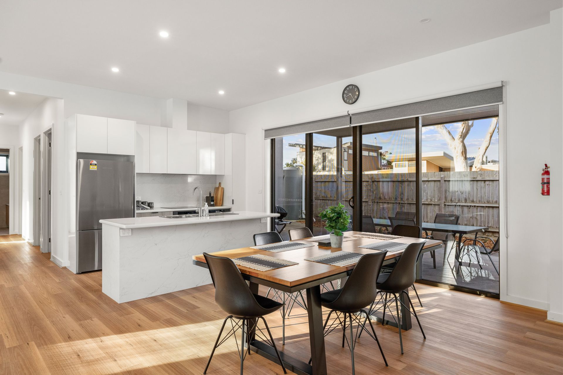 The covered Alfresco (with gas BBQ & seating for 6) overlooks the enclosed rear yard, which is perfect for children & pets alike. There is parking for 2 cars in the Garage (with internal access & a foldup Table Tennis table), with space for an additional 2 vehicles (cars and/or a boat) in the visitor car parks, plus street parking also available.