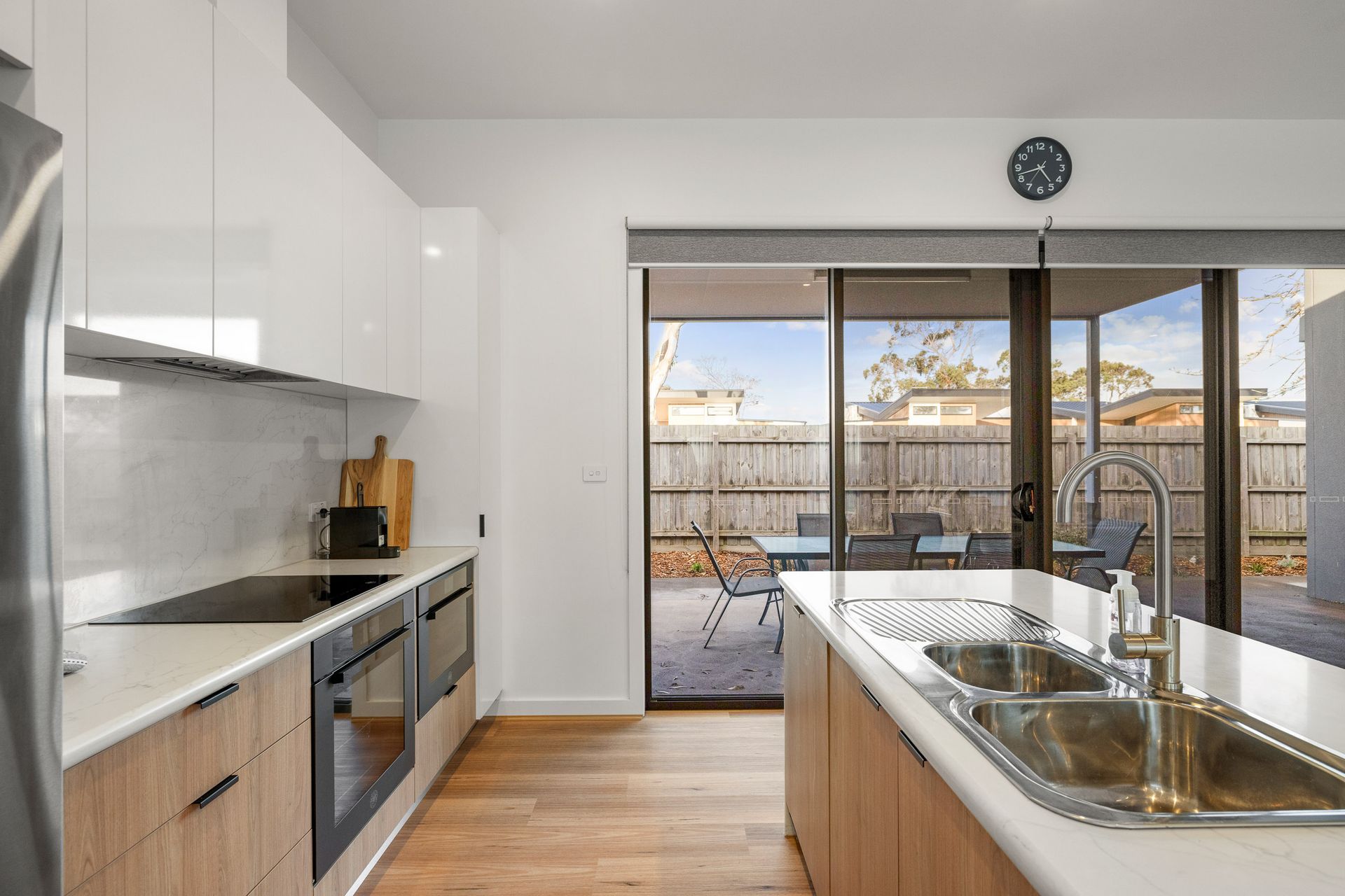The fully appointed kitchen is equipped with cooking utensils, crockery, cutlery, microwave, Nespresso pod coffee machine, toaster, kettle, etc. plus a double sink, fridge, dishwasher, airfryer, electric oven and induction cook top.