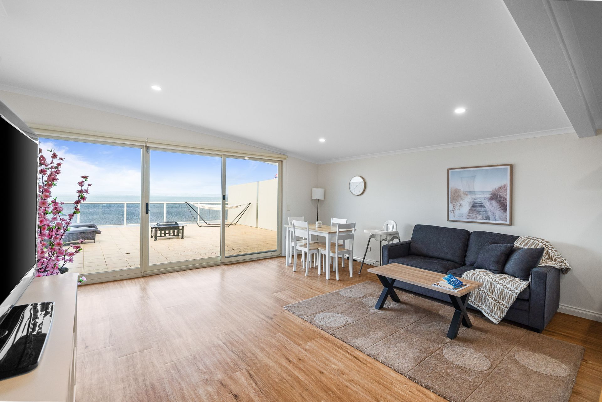 “Rhyll Seaside Penthouse” is a family friendly apartment on absolute waterfront in Rhyll, upstairs from a local café, next door to a Pub and 200m from the Rhyll General store and Boat Ramp (with options for Dolphin and Whale watching). Some of the many features of this lovely home are detailed below: